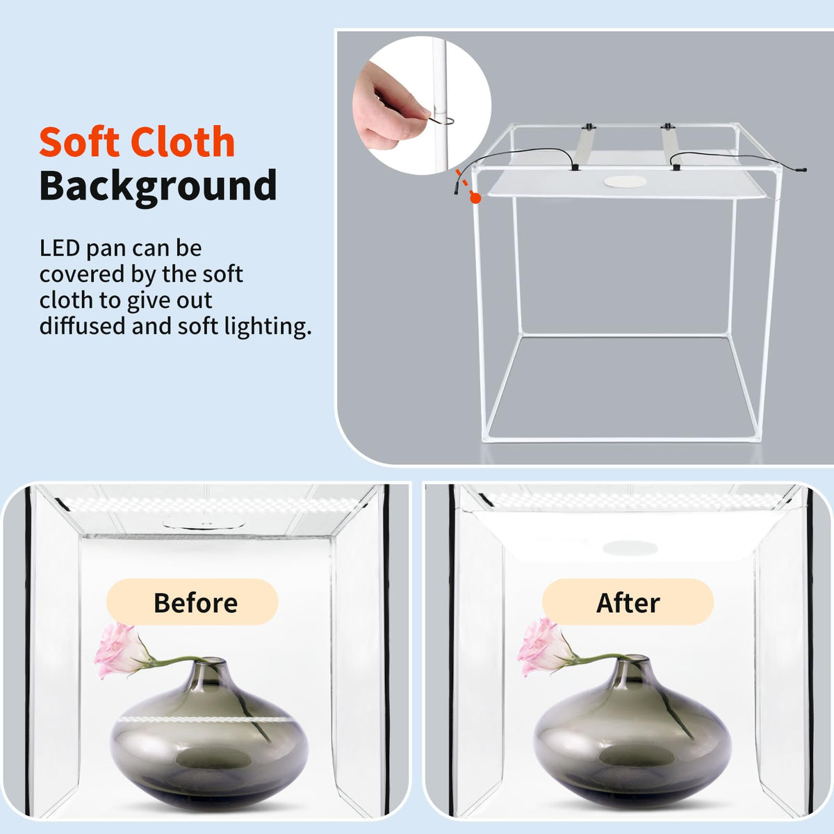 32''X32'' Photo Studio Light Box For Photography, 3 Color 10 Level Adjustable Photo Box With Soft Light Cloth 32 Inch Profession