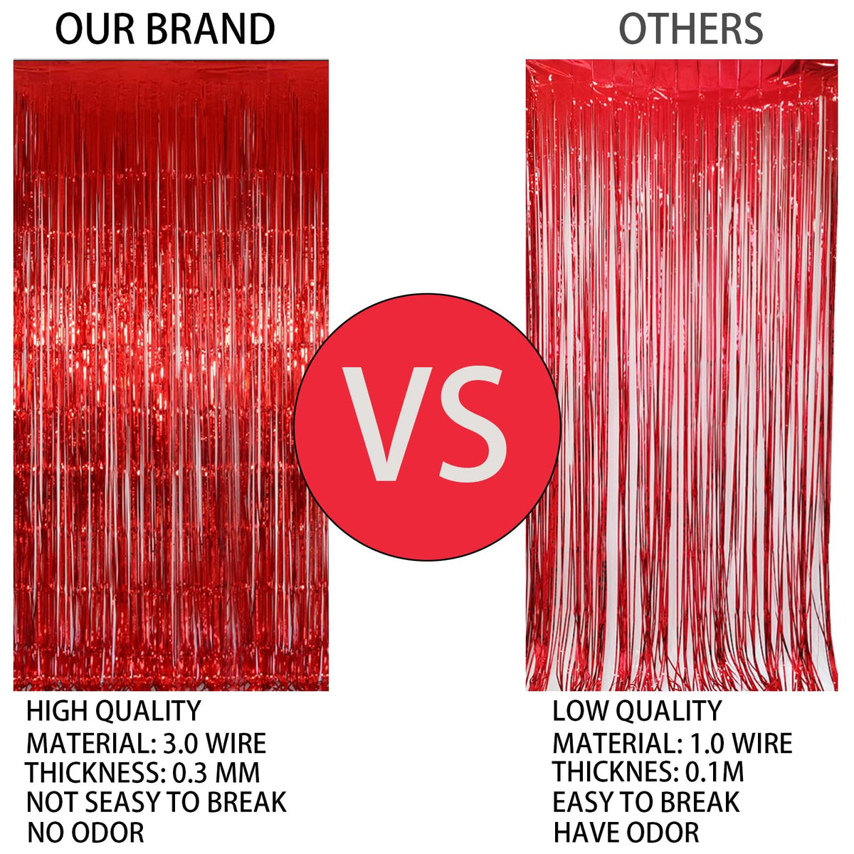 Q: What are the dimensions of the foil curtain backdrops?A: Each foil curtain backdrop measures 3.3 feet by 8.3 feet, making them ideal for various party decorations and photo booths.