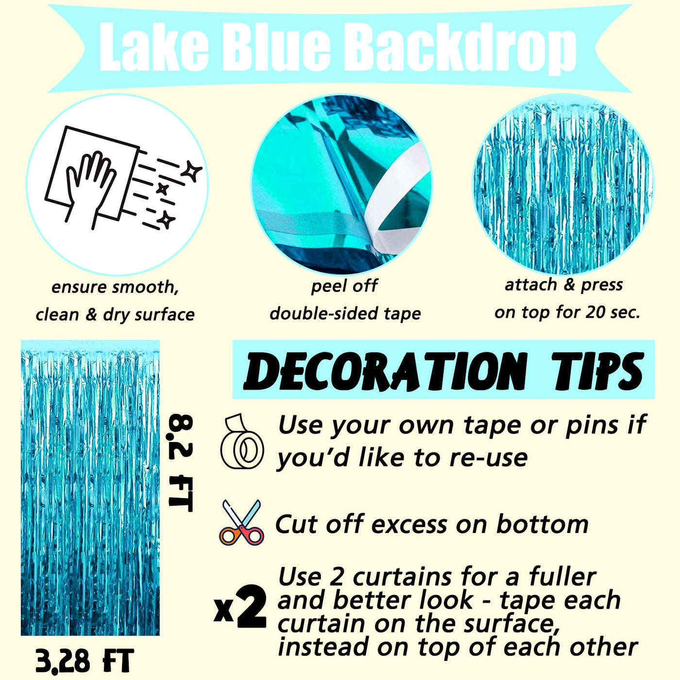 4 Pack Fringe Curtain Backdrop, 3.2Ft X 8.2Ft Blue Metallic Tinsel Foil Fringe Streamers Background For Photo Booth Birthday Wed