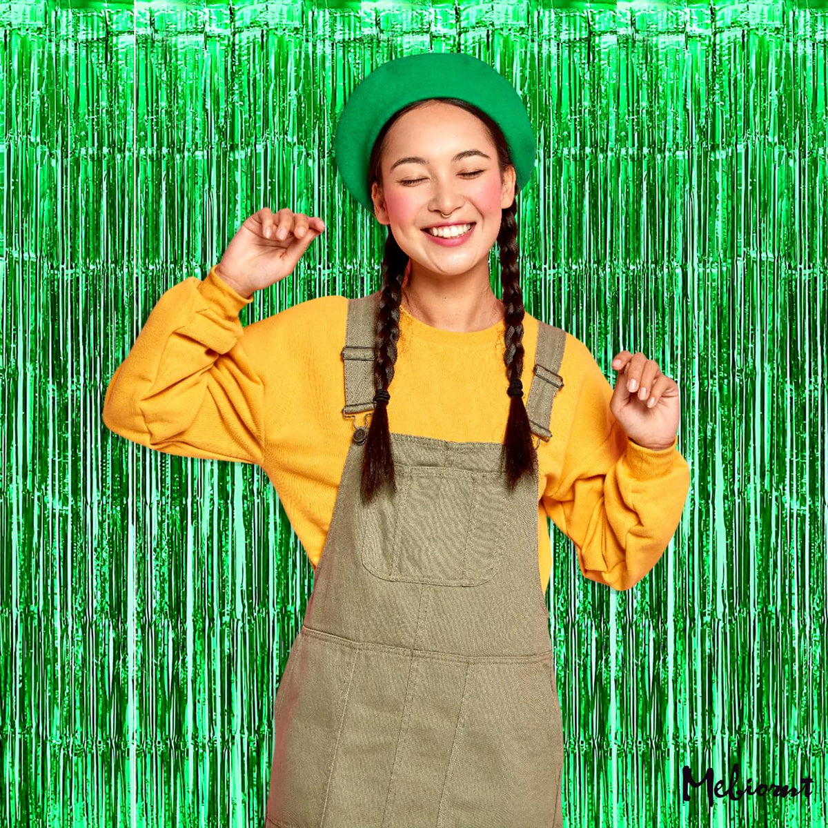 4 Pack Green Fringe Curtain Backdrop, 3.2Ft X 6.6Ft Metallic Tinsel Foil Fringe Streamers Background For Photo Booth Birthday We