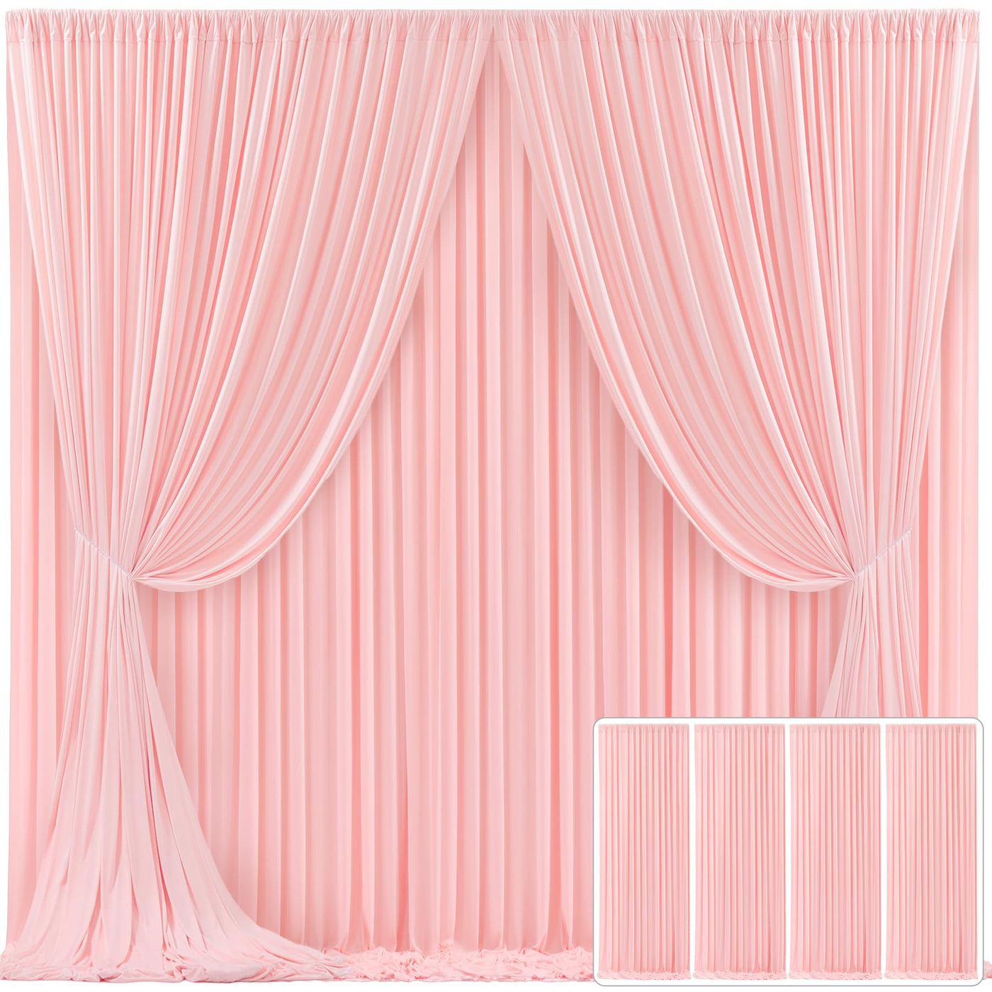4 Panels Blush Pink Backdrop Curtain For Parties Baby Shower Wrinkle Free Pink Photo Curtains Backdrop Drapes Fabric Decoration