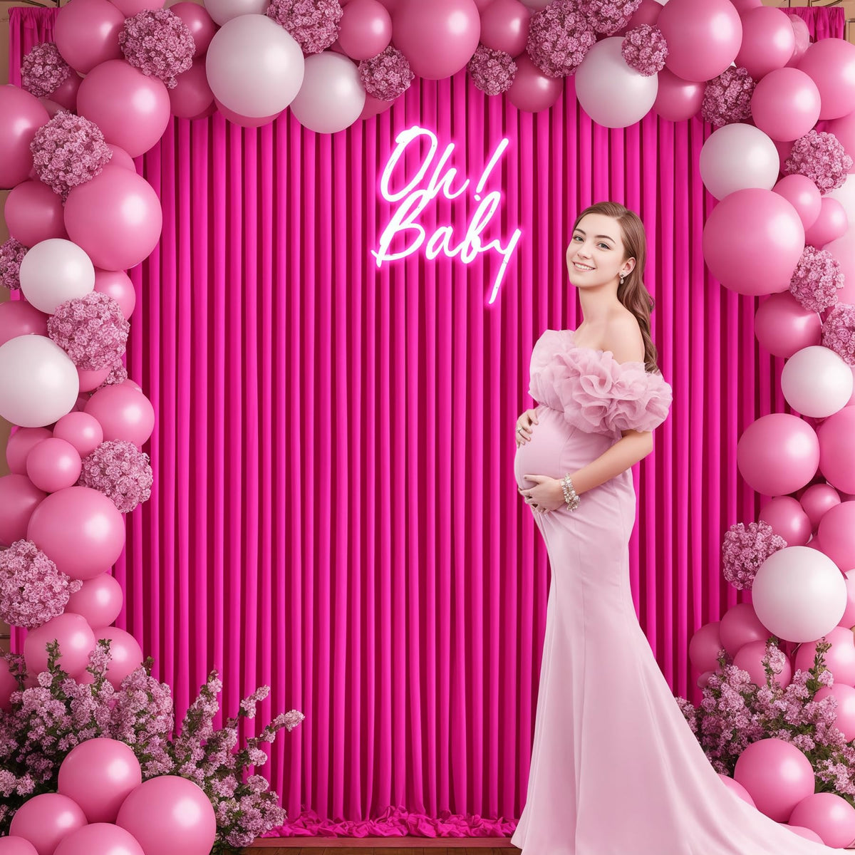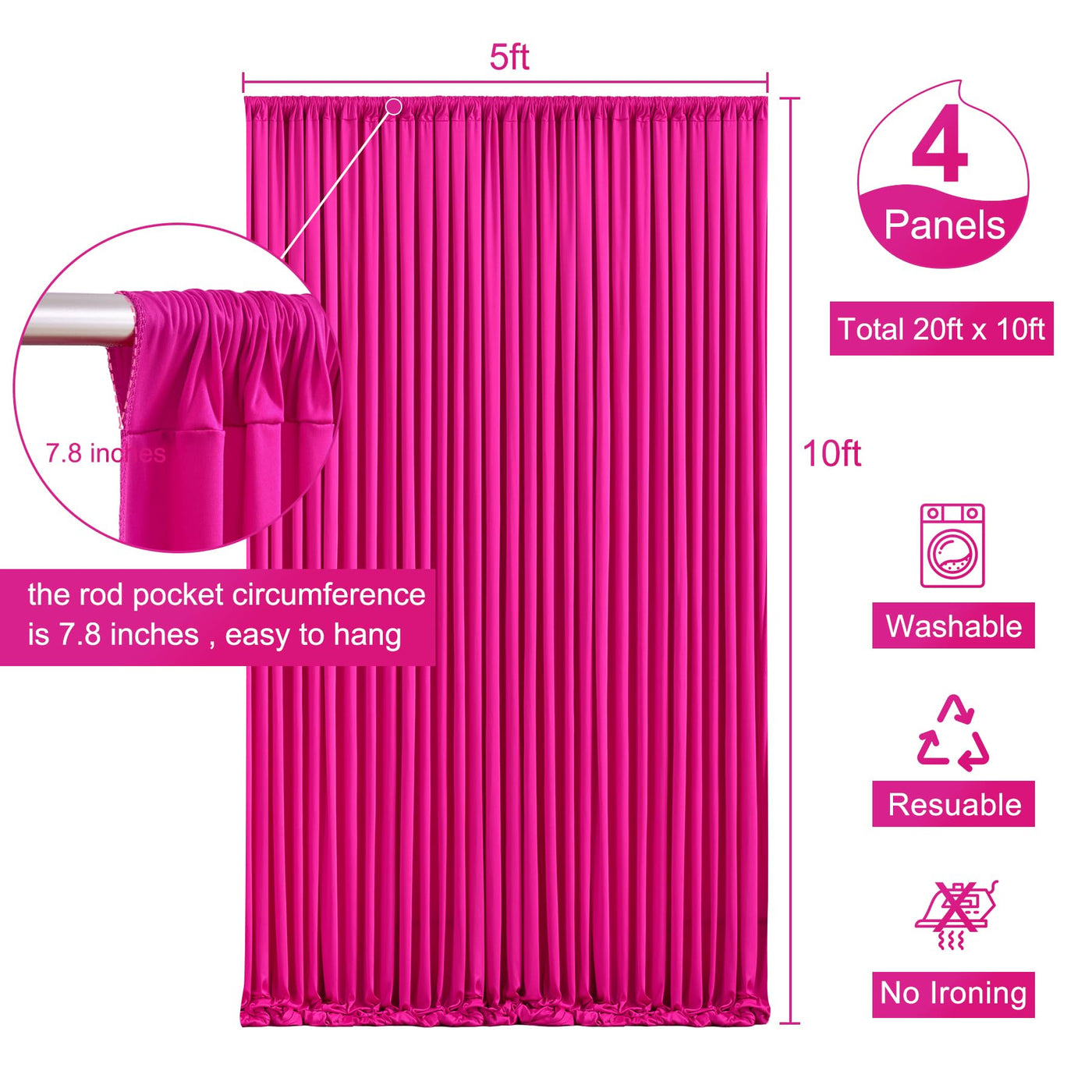 4 Panels Fuchsia Backdrop Curtain For Parties Birthday Party Wrinkle Free Hot Pink Photo Curtains Backdrop Drapes Fabric Decorat