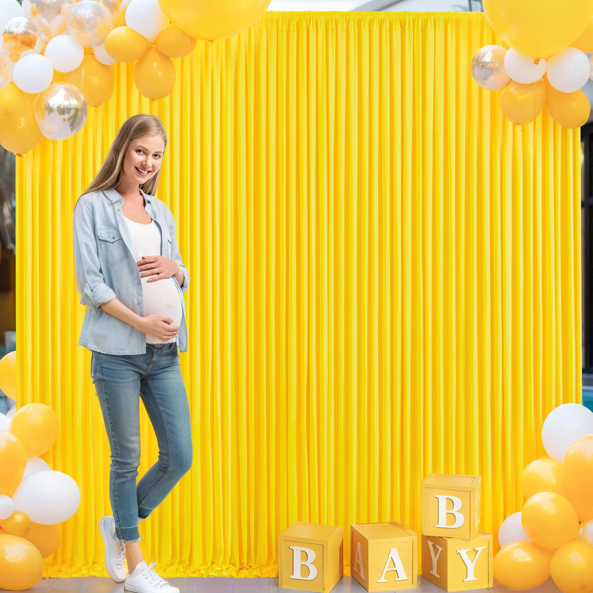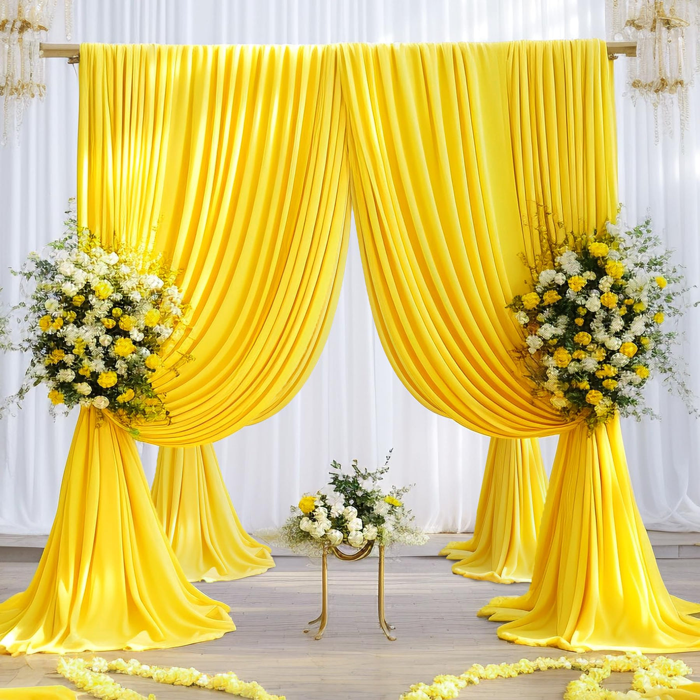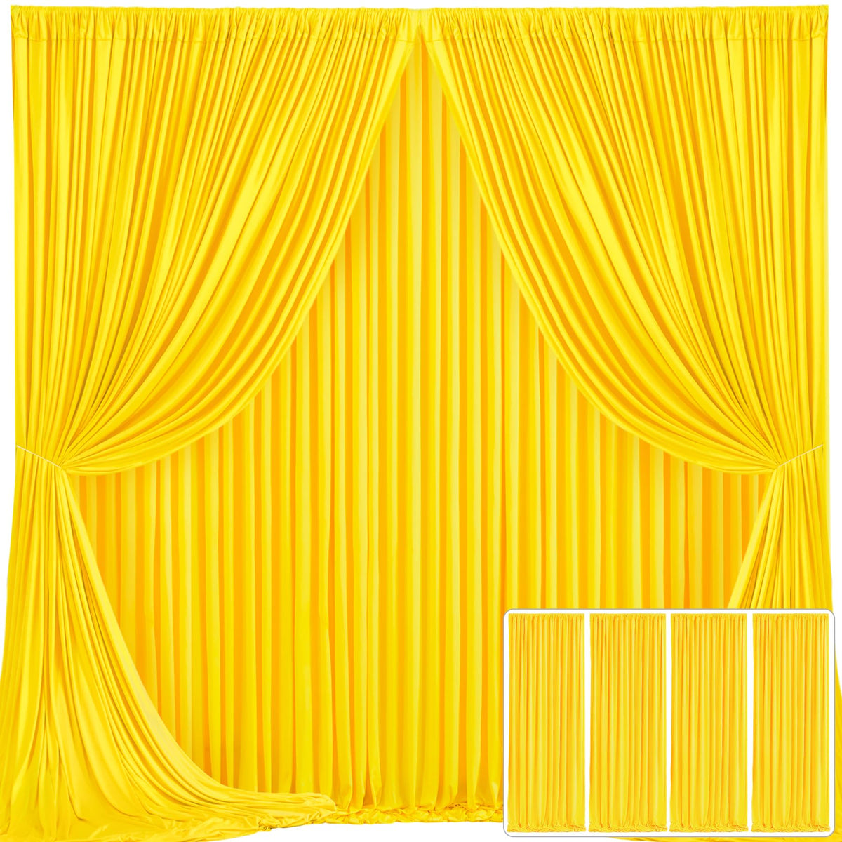 4 Panels Yellow Backdrop Curtain For Parties Wrinkle Free Lemon Yellow Photo Curtains Backdrop Drapes Fabric Decoration For Birt