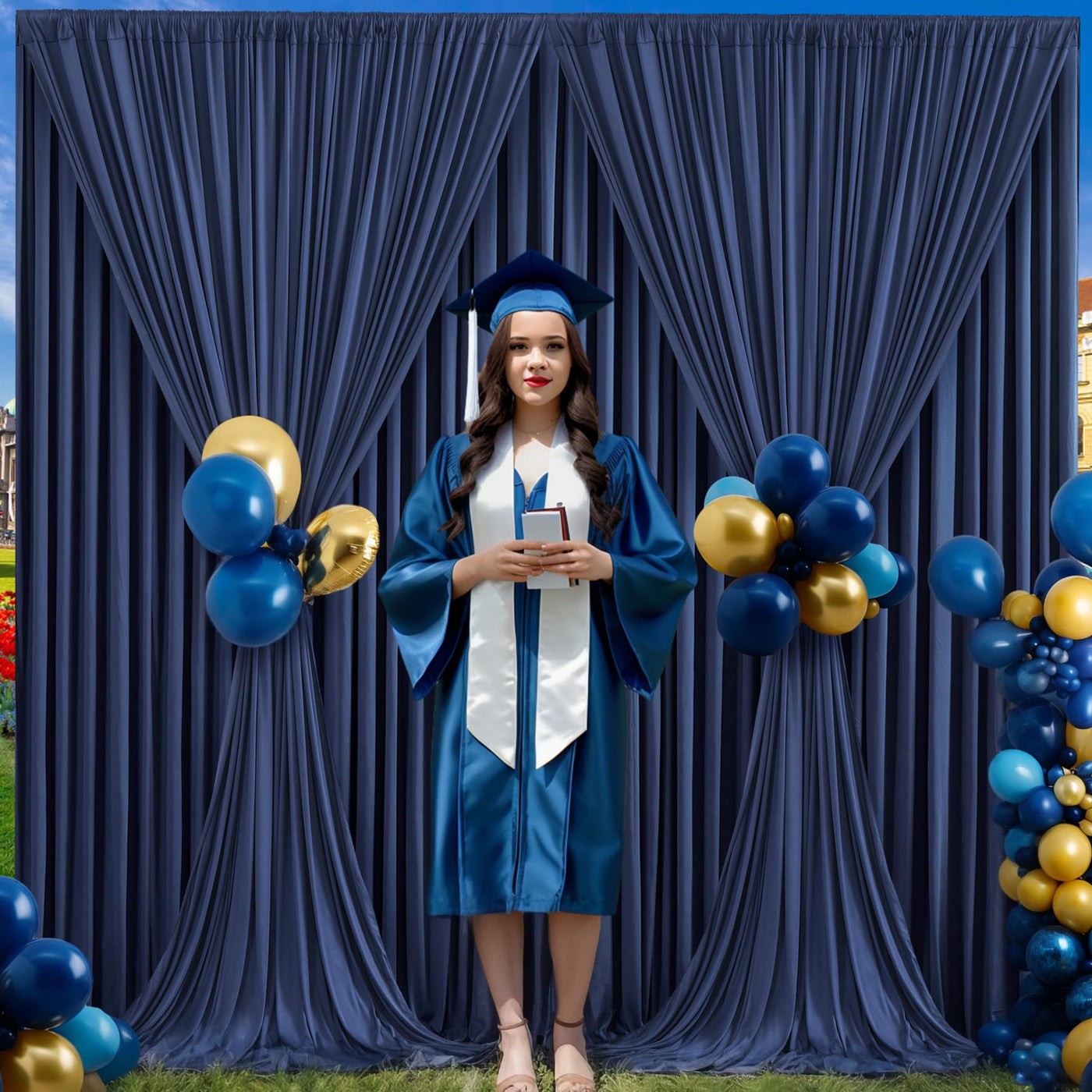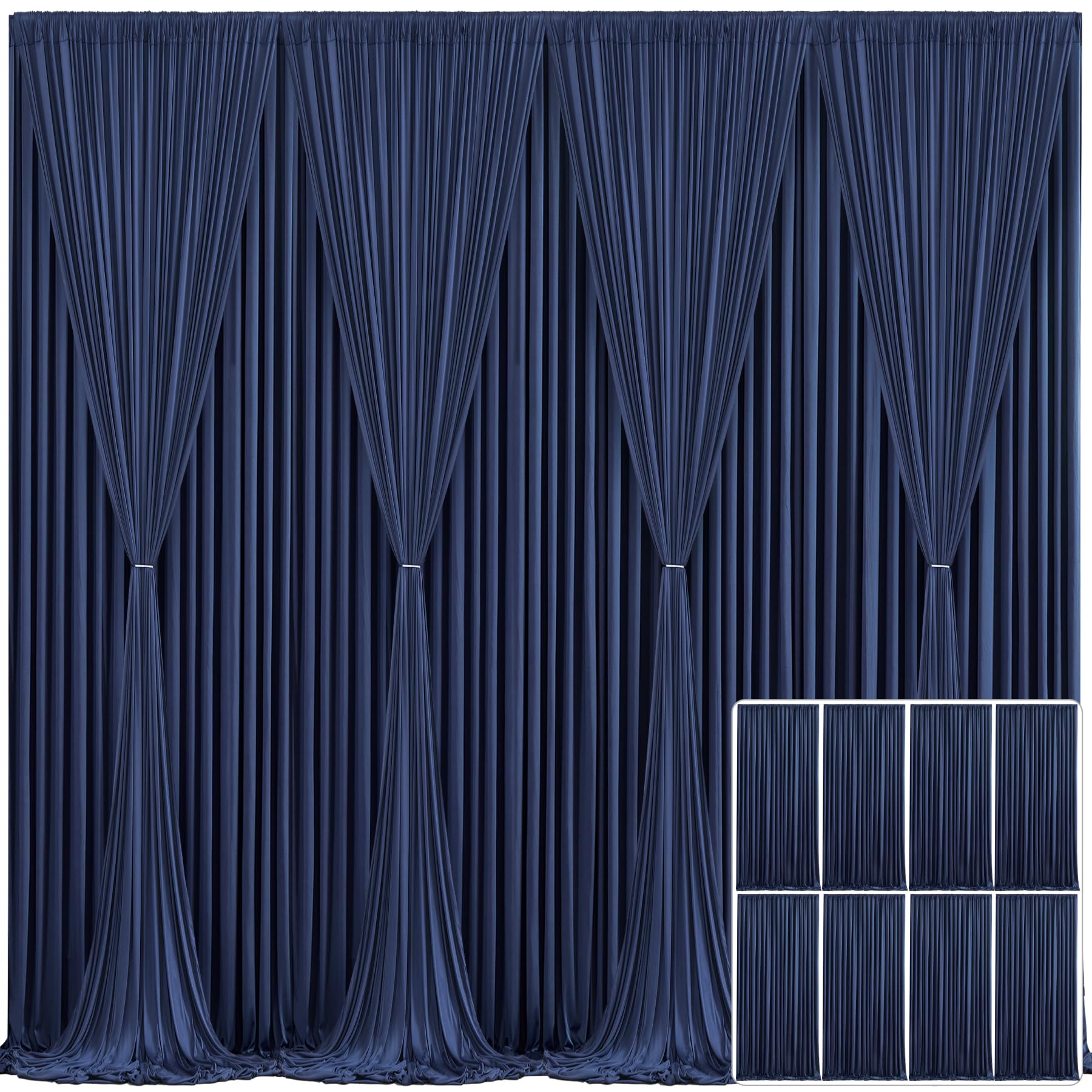 8 Panels Navy Blue Backdrop Curtain For Parties Wrinkle Free Photo Curtains Backdrop Drapes Fabric Decoration For Wedding Birthday Party Baby Shower 40Ft(W) X 10Ft(H)