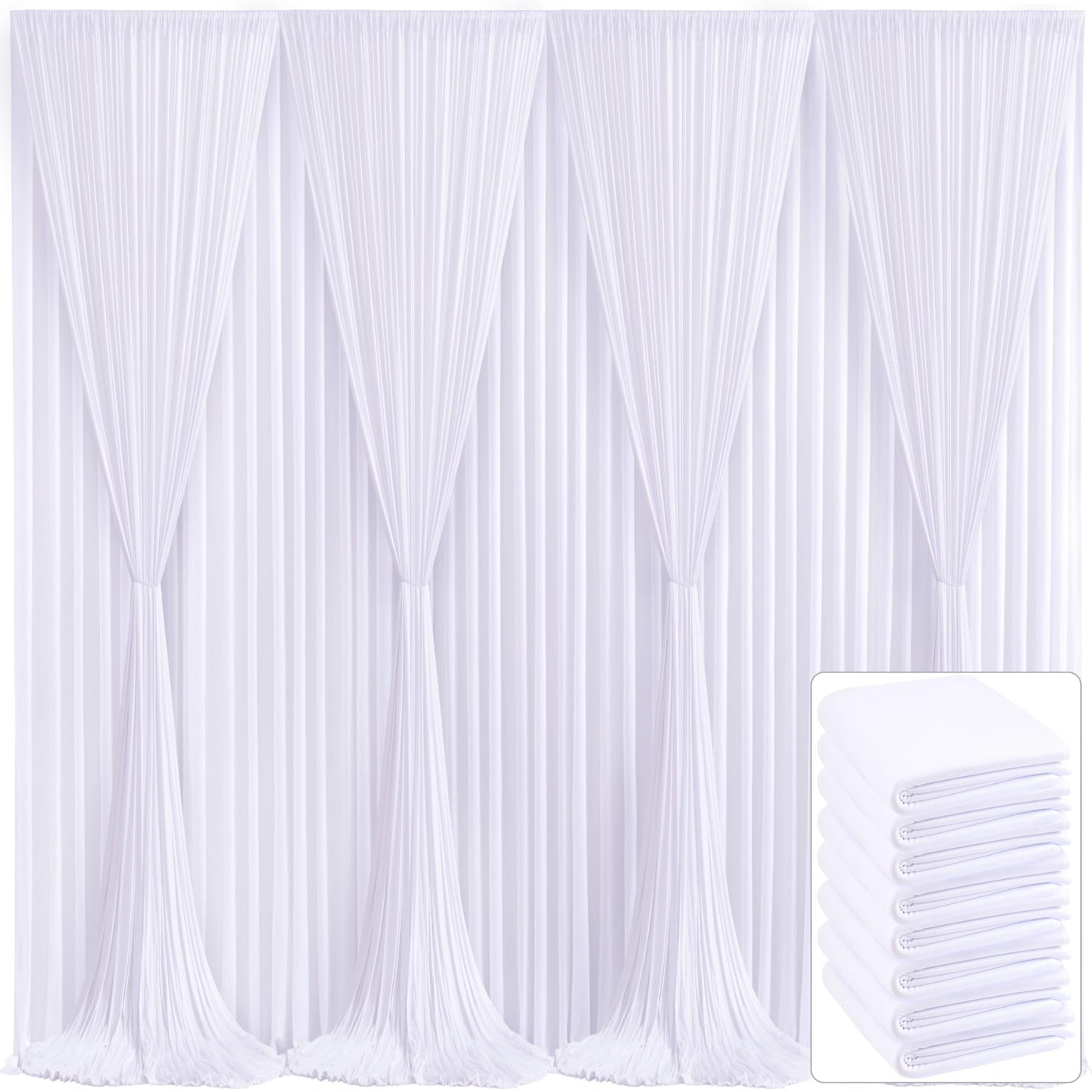 Includes: 8 Panels Soft Wrinkle Free Party Backdrop Drapes, Each Panel Backdrop Size Is 5Ft (W) And 10Ft (H), It Would Work Well In Anywhere You Want An Elegant Touch. | Material: Pure Silky Fabric White Backdrop Curtains Panels. The White Bridal Shower Backdrop Is Wrinkle Free And Soft, Smooth Stretchy Fabric That Falls On The Floor In A Flowing Manner. | Easy To Use: Elegant White Baby Shower Backdrop Curtains Has 7.8 Inches Perimeter Rod Pocket Across The Top Edge That Can Be Used To Hang Pipes And Backdrop Drapes Stand. | Occasion: White Wedding Curtains Backdrop Is Suitable For Wedding, Baby Shower, Birthday Parties, Gender Reveal, Bridal Shower, Engagement, Receptions, Photo Booths, Photography Backdrop, Photoshoot, Graduation, Event Party, Ceremony, Stage Curtain, Christmas, Candy Buffet, Reception, Room Decoration, Home Decor, Chapel Backdrop Or Anywhere You Want | Resuable: Hand Wash Or Machine Wash. This White Curtains For Backdrop Decorations Folds Flat For Easy Storage And Preparation For The Next Party. It