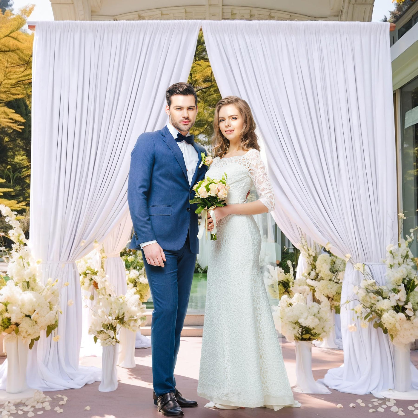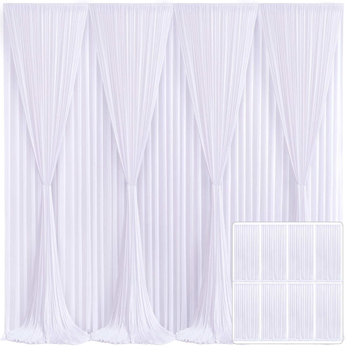 8 Panels White Backdrop Curtain For Parties Wedding Wrinkle Free White Photo Curtains Backdrops Drapes Fabric Decoration For Baby Shower Birthday Party 40Ft(W) X 10Ft(H)