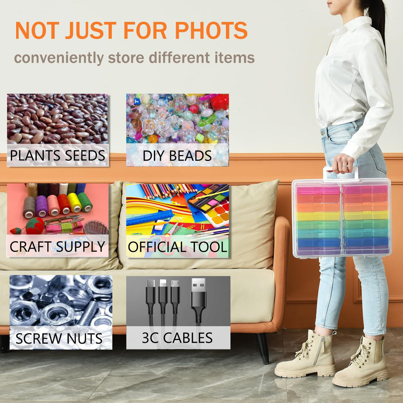 Alink Photo Storage Box With Handle, 4'' X 6'' Photo Organizer Storage Container With 16 Inner Case For Pictures, Arts, Crafts, Sewing, Stickers, Seeds, Stationery - Colored