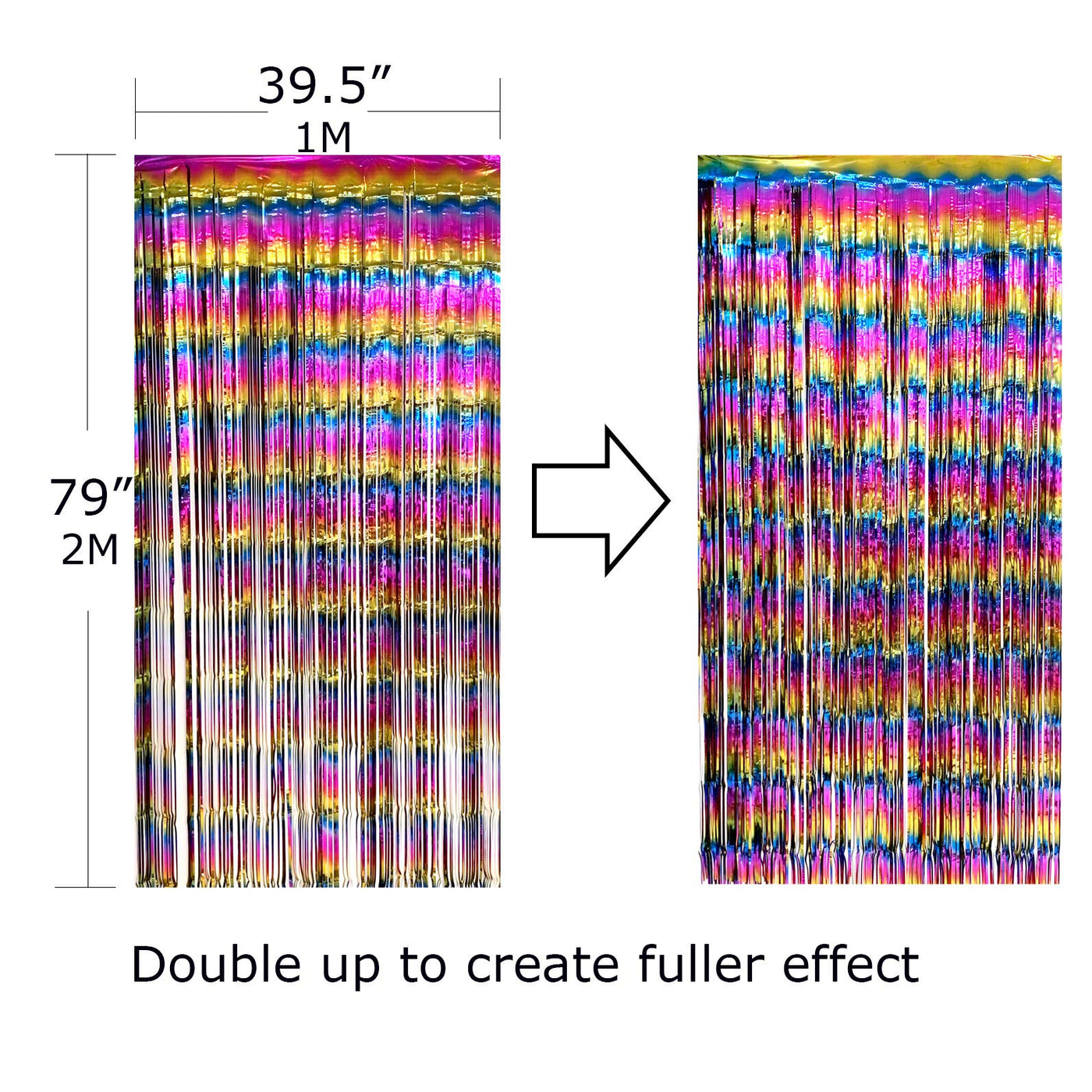 Material: Better Quality Mylar Metalic Film. Strong Self Adhesive To Ensure A Sturdy Fix. If You Want To Re-Use It, Do Not Use The Built-In Adhesive. | 4 Piece Value Pack, Each Measures: 2 Meter High (79 Inch) X 1 Meter Wide (39.3 Inch) | Perfect For Party Backdrop All Occasions Like Birthday, Wedding, Bridal Shower, Baby Showers, Celebration, Instantly Cover The Wall Or Doors With Your Desired Theme. | For Added Density And Fuller Looking, Double Up The Backdrop By Tape Over Each Other. Ideal For The Theme Color Of Rainbow