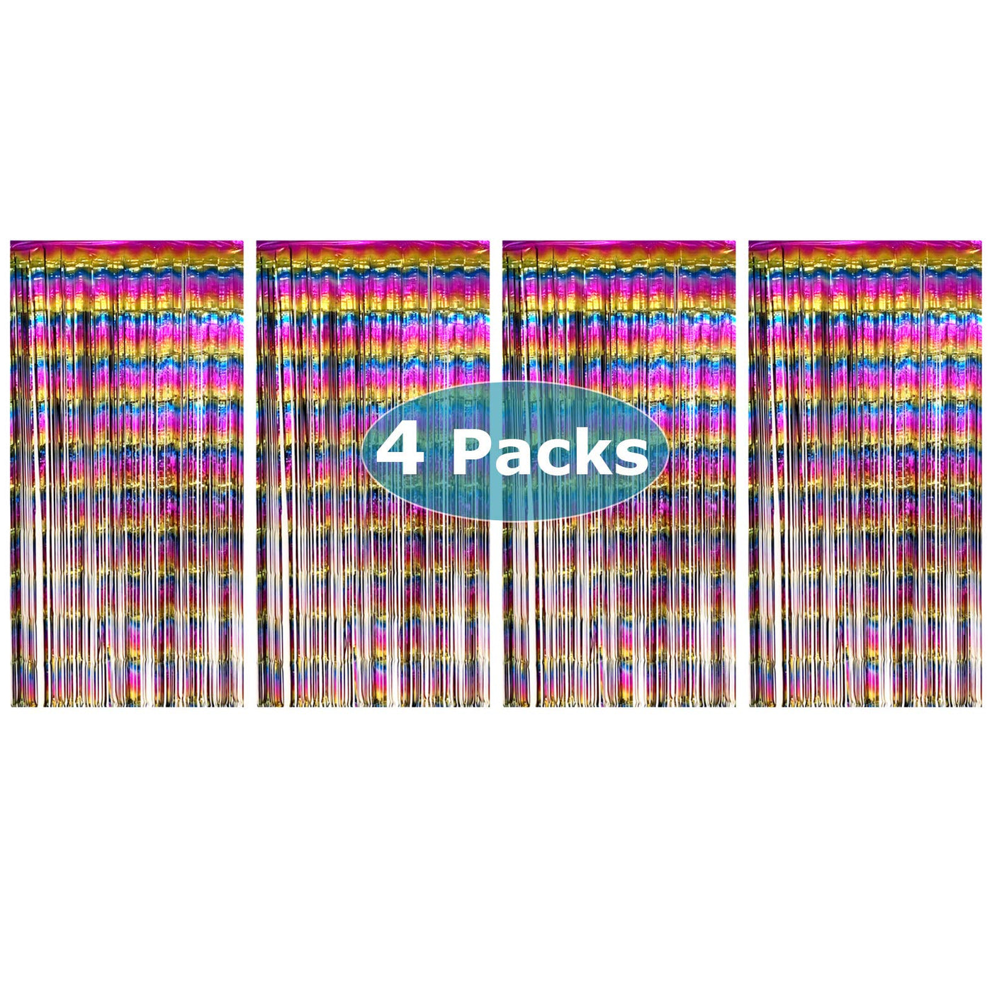 Allgala 4Pk 6.5Ft X 3.2Ft (Total 6.5Ft X 13.1 Ft) Metalic Tinsel Party Photo Backdrop Curtains Door Fringe D Cor Rainbow Bd5230