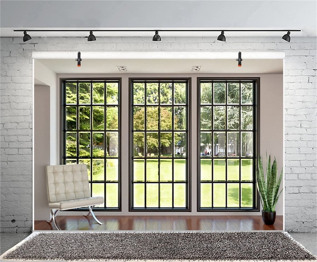 Aofoto 10X7Ft Business Office French Sash Window Backdrop Living Room Sofa Plant Photography Background Interior Casement Work At Home Modern Flat Furniture Apartment Decoration Residence Villa Props
