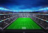 Aofoto 7X5Ft Night Illuminated Football Arena Stadium Backdrop Soccer Pitch Fans In The Stands Photography Background Spotlight League Match Court Team Game Filed Lines Goal Gate Photo Studio Props