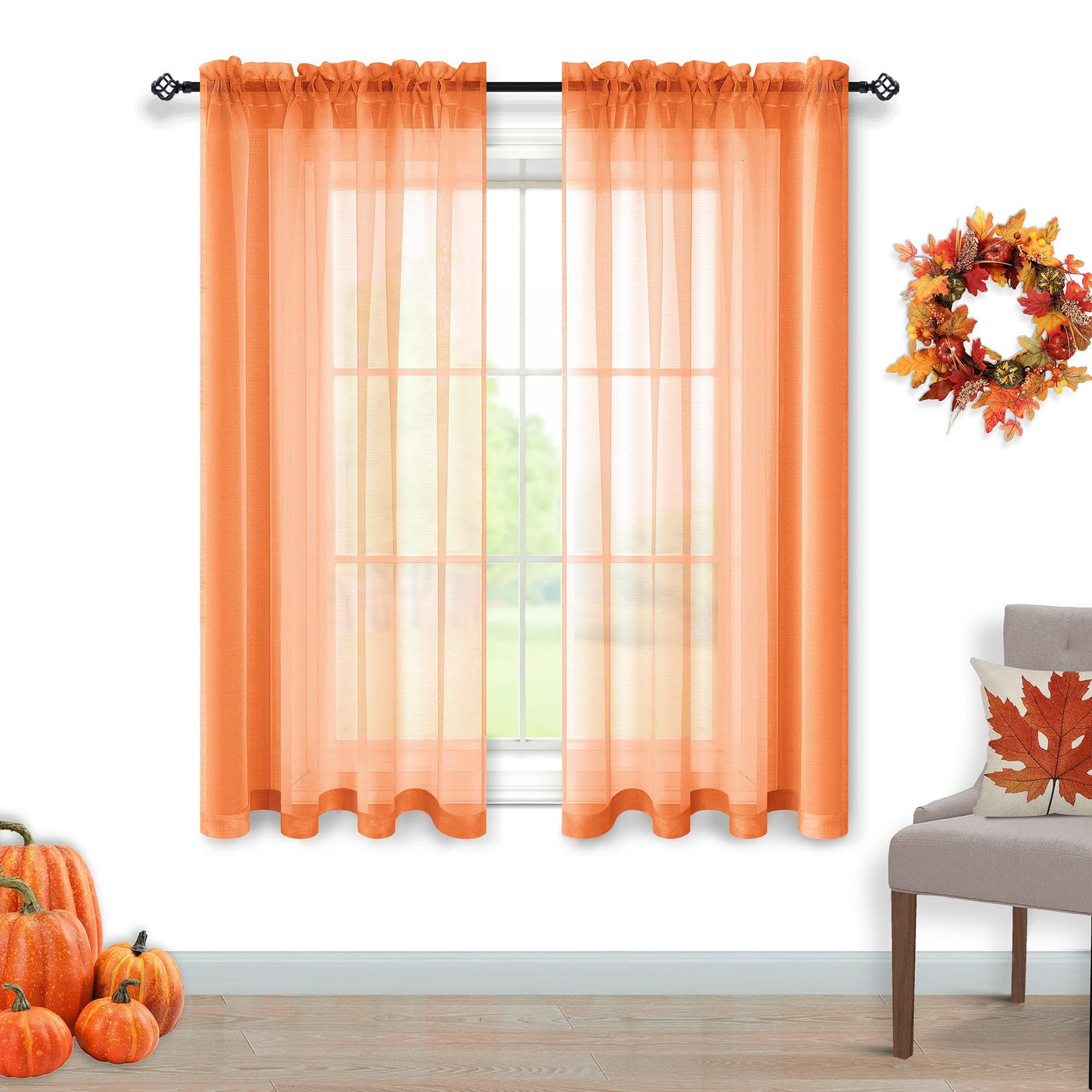 Autumn Fall Decor Orange Short Curtains 45 Inch Length For Kitchen Bathroom Windows 2 Panels Rod Pocket Thanksgiving Havest Smal