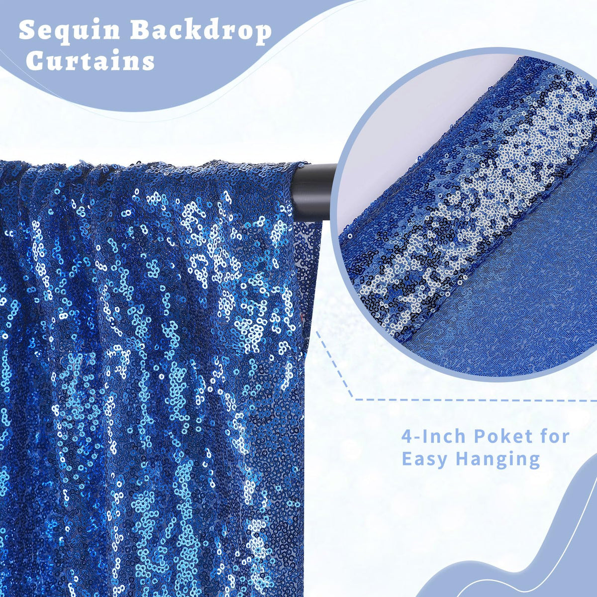 Royal Blue Sequin Backdrop Curtains 2 Packs 2Ftx8Ft For Background Decoration