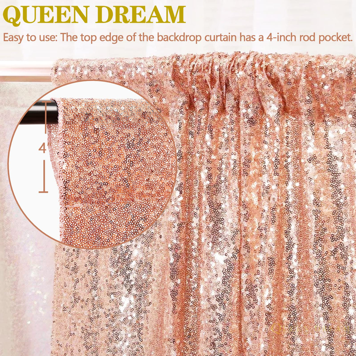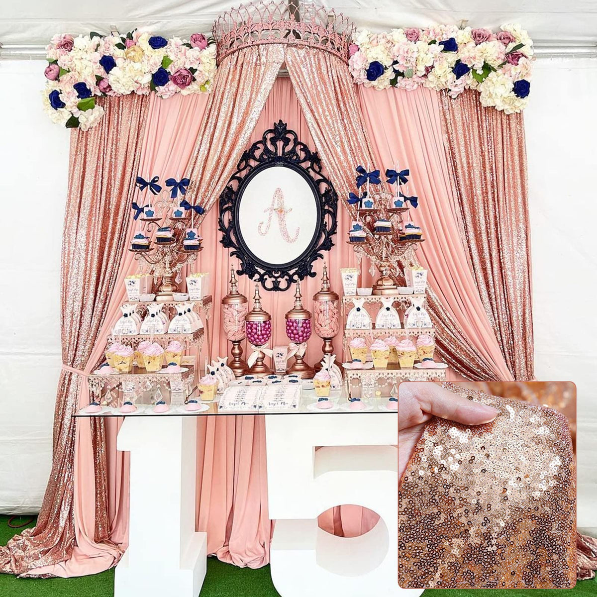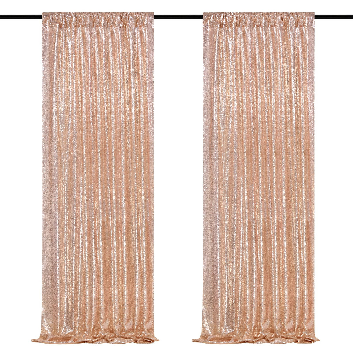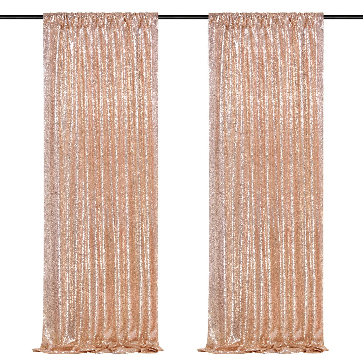 Backdrop Curtain Drapes 2 Panels Rose Gold Party Sequin Background 2Ft X 8Ft Wedding Ceremony Birthday Decorations Shimmer Fabric