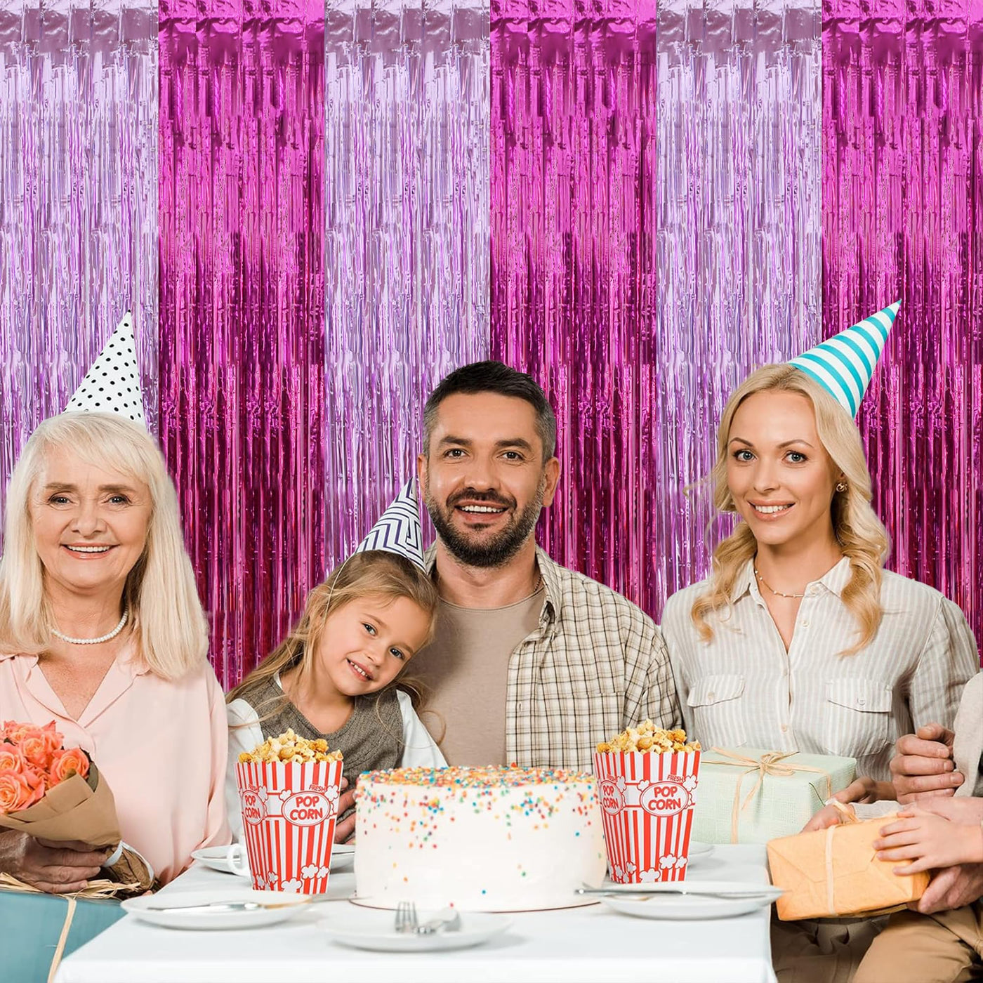 Beishida 3Pcs Hot Pink Door Streamer Colorful Hot Pink Colour Scheme Backdrop Foil Fringe Tinsel Curtains Hot Girls Mean Girls B