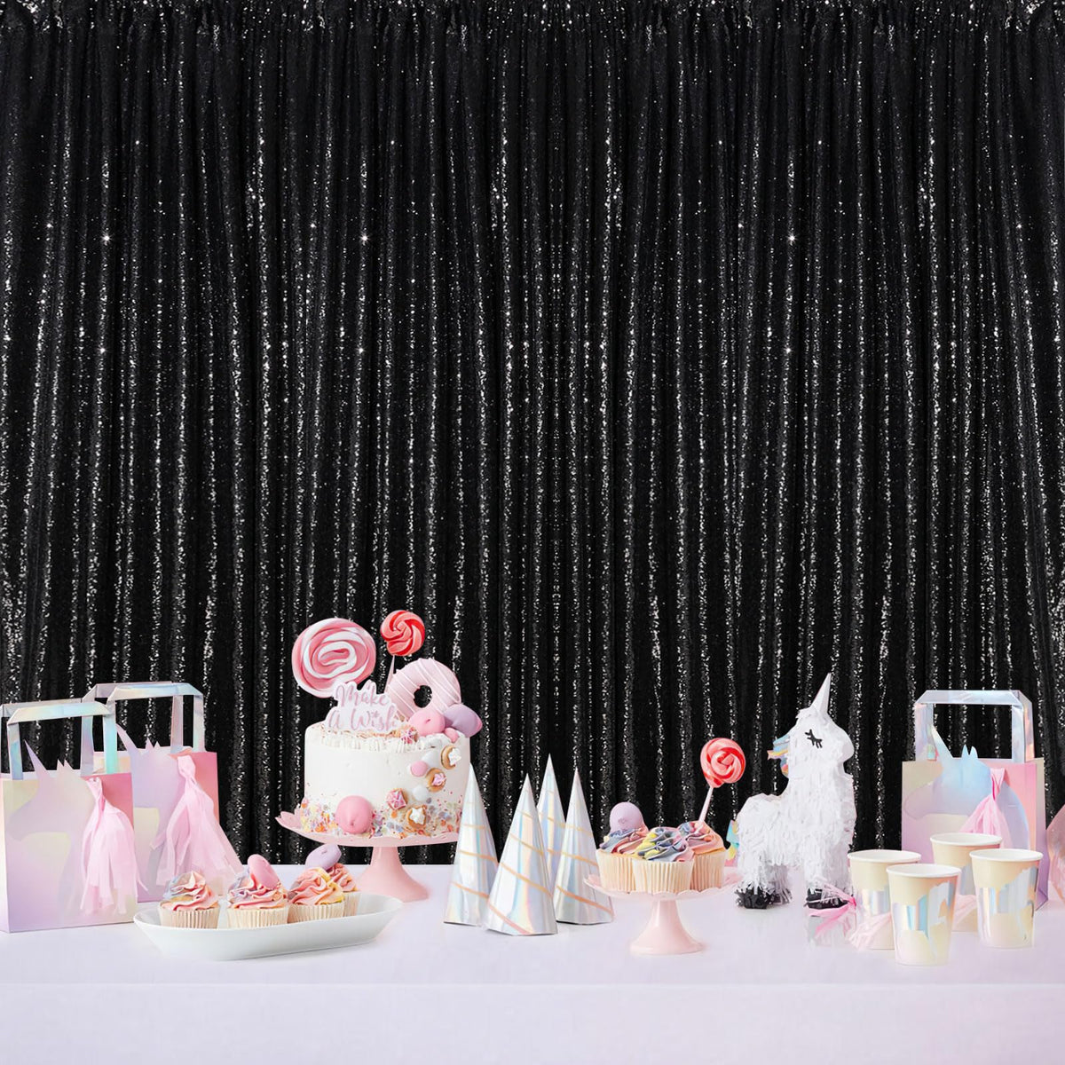 Black Backdrop For Graduation Decorations: 2Ftx8Ft Black Sequin Halloween Backdrop Curtains Panels Wedding Ceremony Party Home D