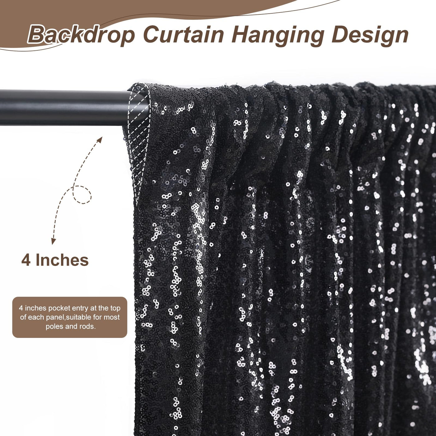 Q: How do I hang the sequin backdrop curtains?A: These curtains feature a 4-inch rod pocket at the top, making it easy to hang them on a standard curtain rod or backdrop stand.