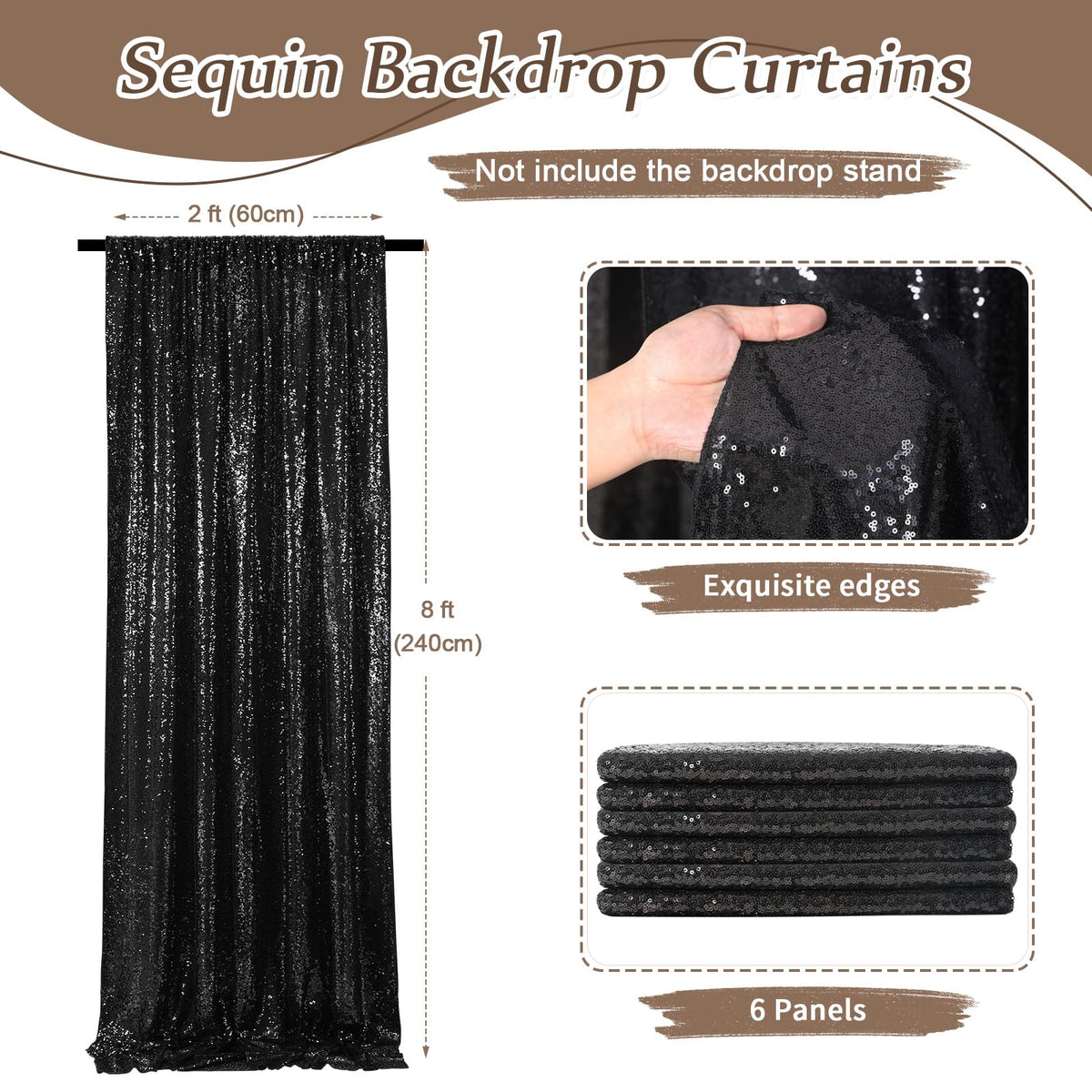 Black Sequin Backdrop Curtains 6 Pieces 2Ftx8Ft Shimmer Birthday Wedding Photograph Baby Shower Decoration Backdrop Fabric For C