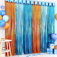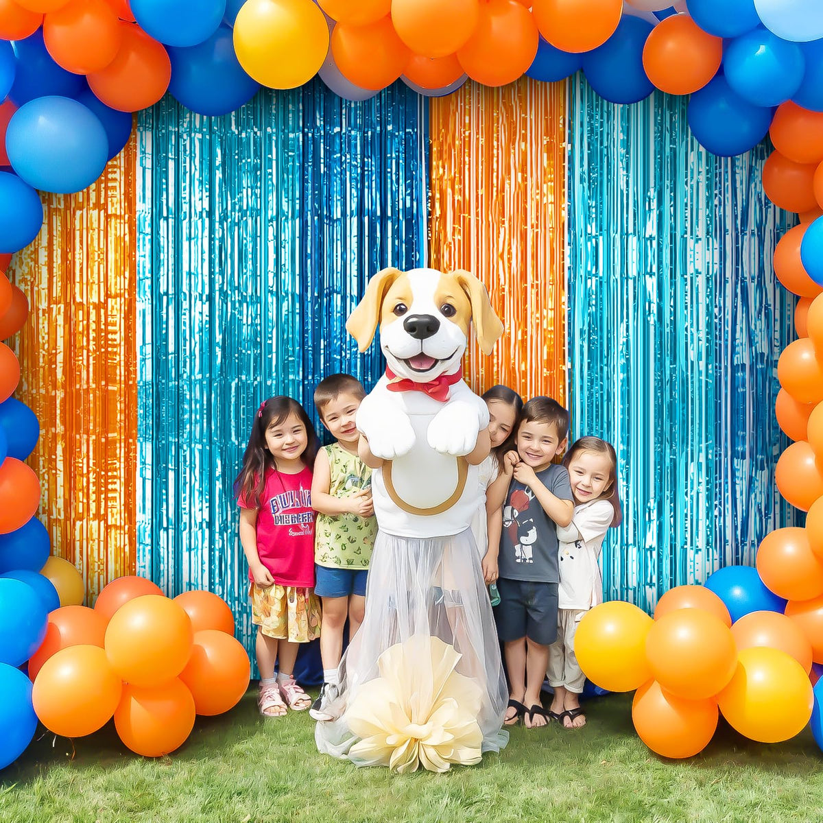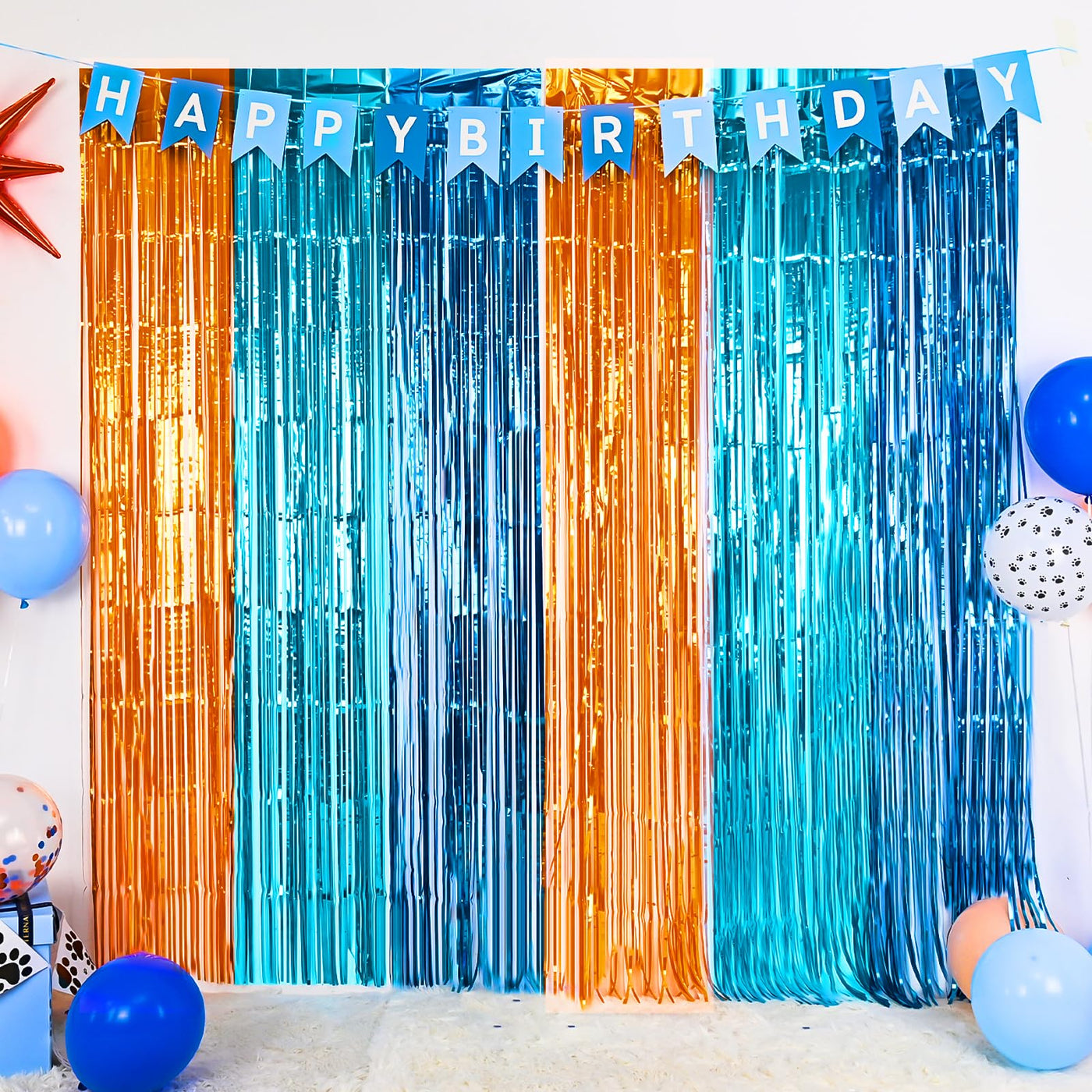 Blue Dog Party Decorations, 2 Packs Of 3.3X6.6 Ft Blue And Orange Foil Fringe Curtains, Blue Orange And Light Blue Tinsel Backdr