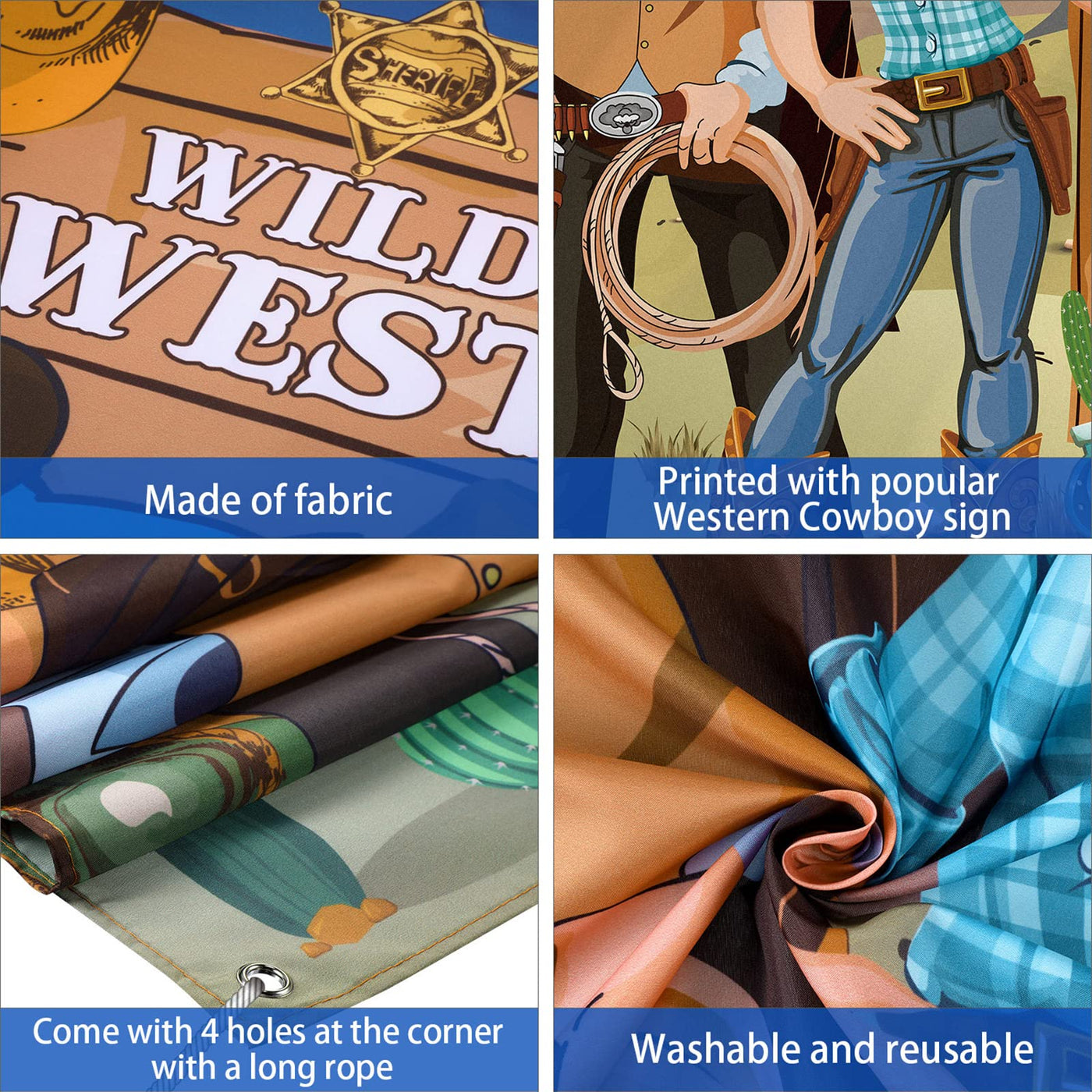 Blulu Cowboy Party Decorations Western Photo Booth Props, Large Fabric West Cowboy Door Banner Background, Funny Western Games Supplies, 6 X 3 Ft