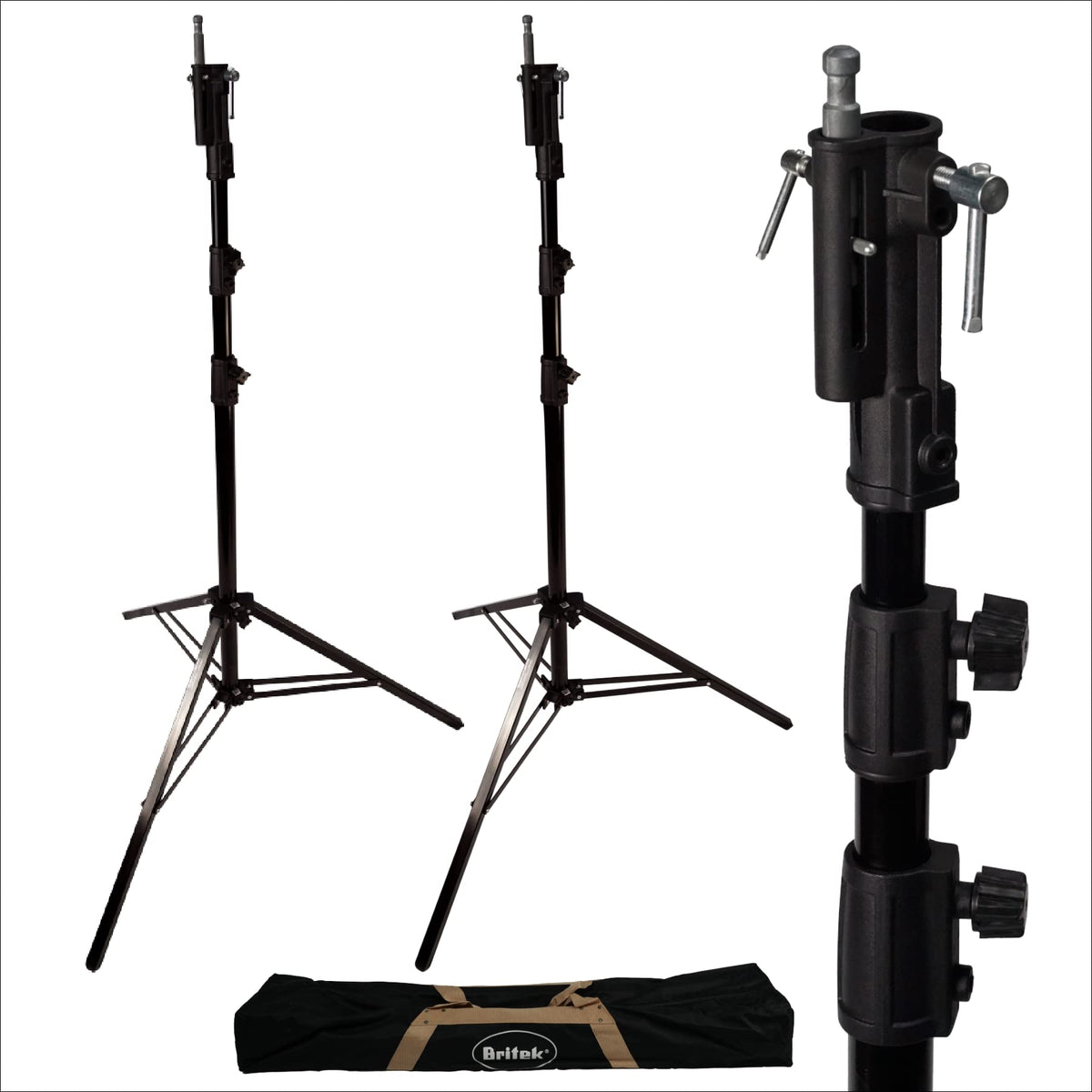 Britek 9Ft / 2.7M Heavy Duty Steel Light Stand For Video, Portrait And Photography Lighting (2 Pieces With Carrying Bag)