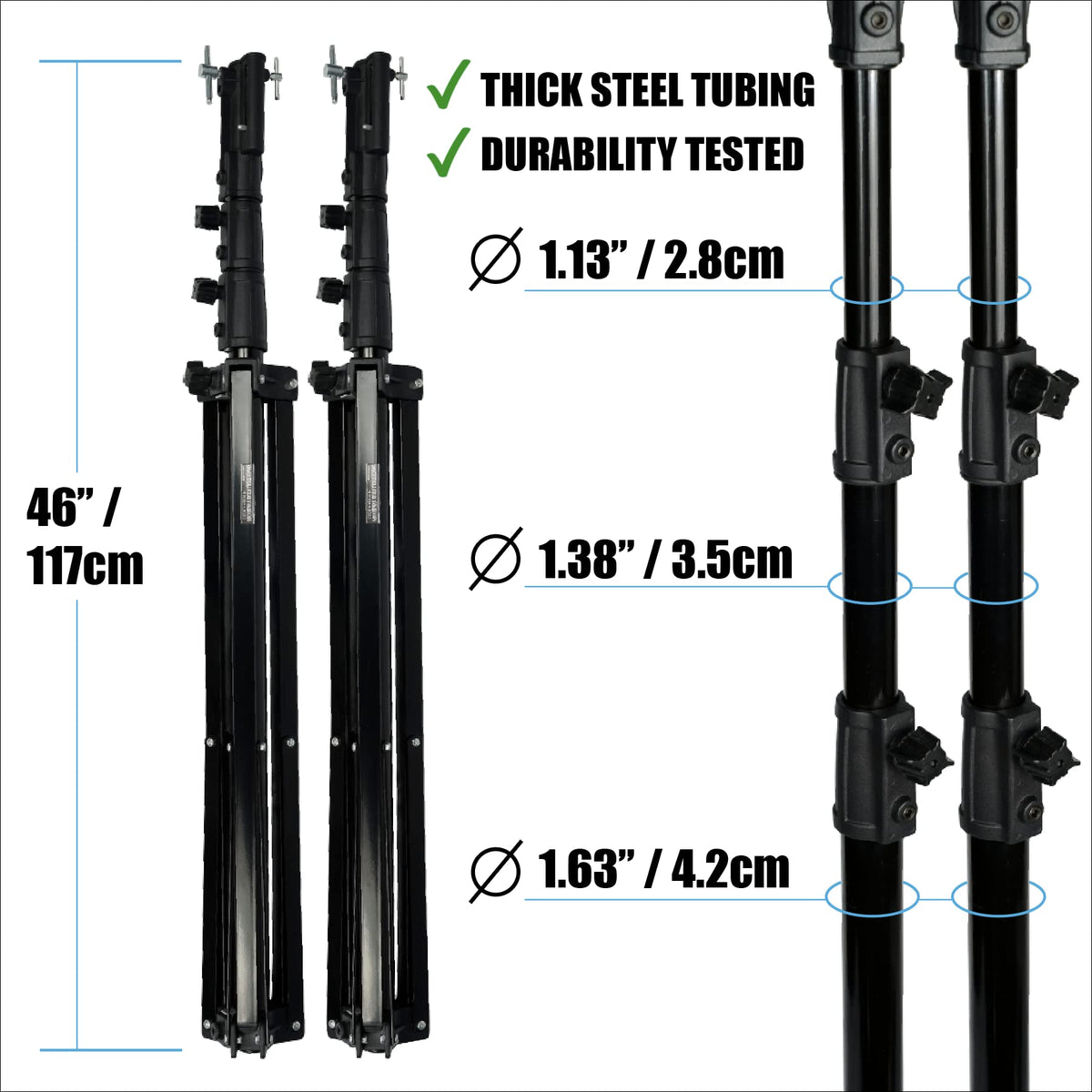 Package Includes: 2 X Heavy Duty Light Stands 1 X Carrying Bag With Zipper And Studded Legs