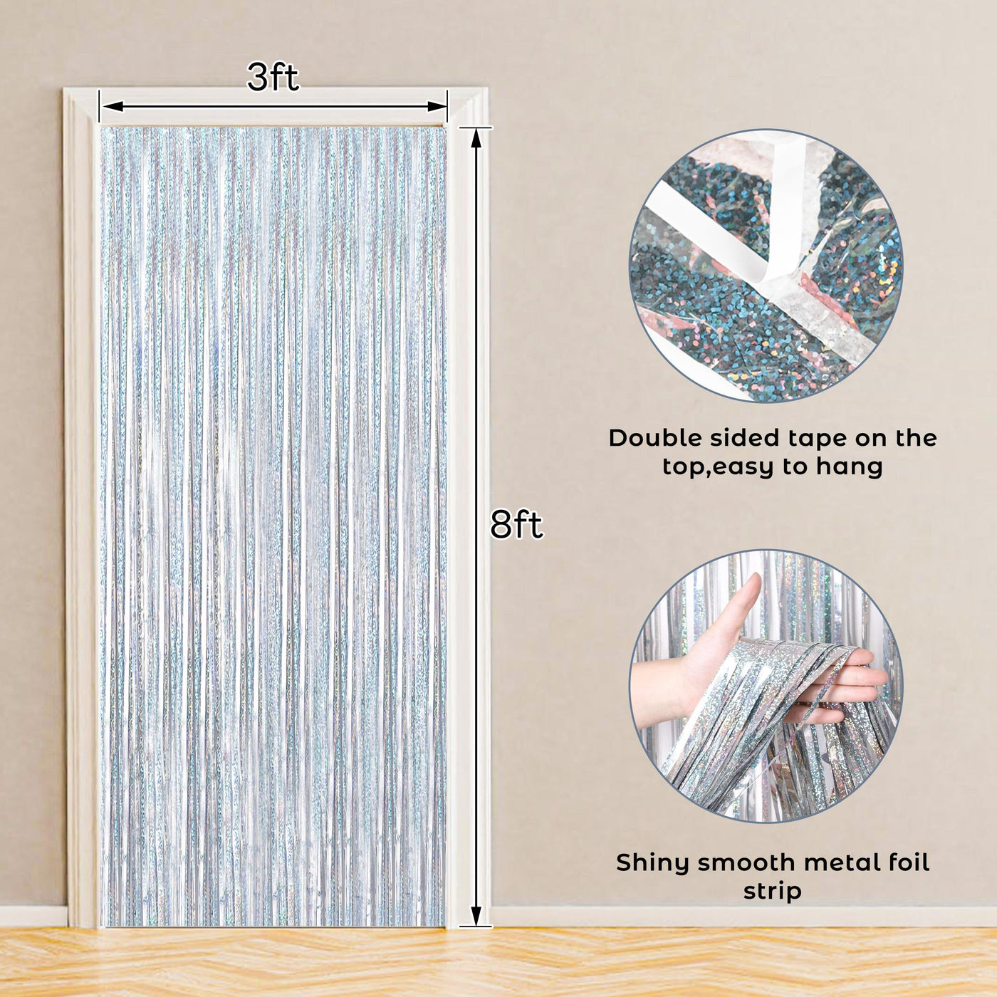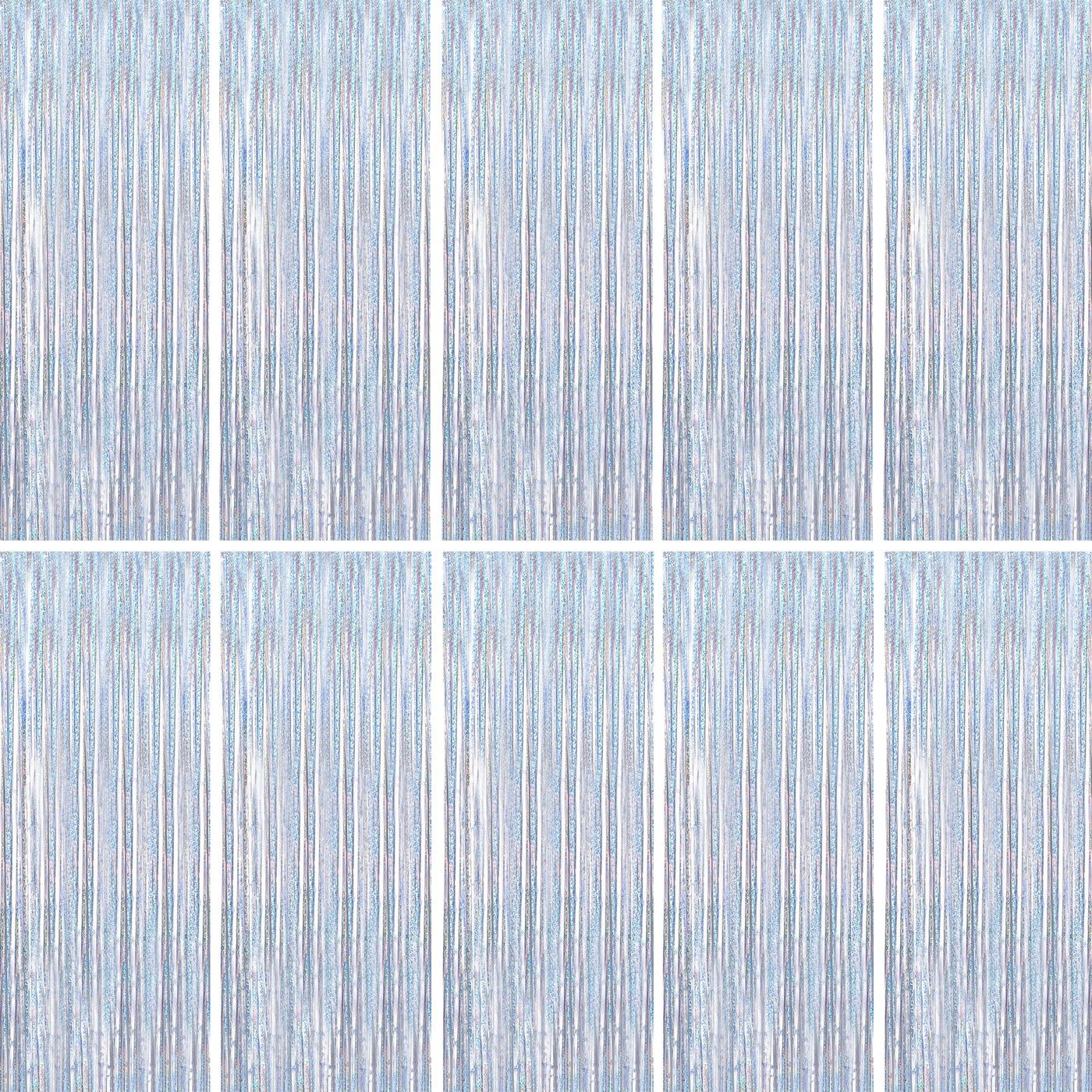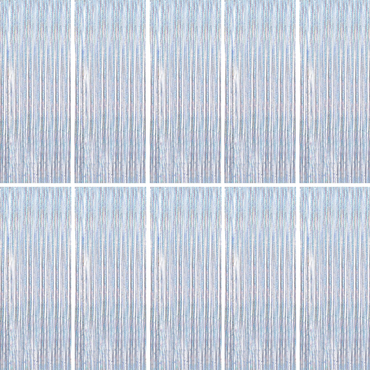 Q: How many curtains are included in a single package?A: Each package contains 10 Laser Silver foil fringe curtains, providing ample decorations for larger events or multiple areas.