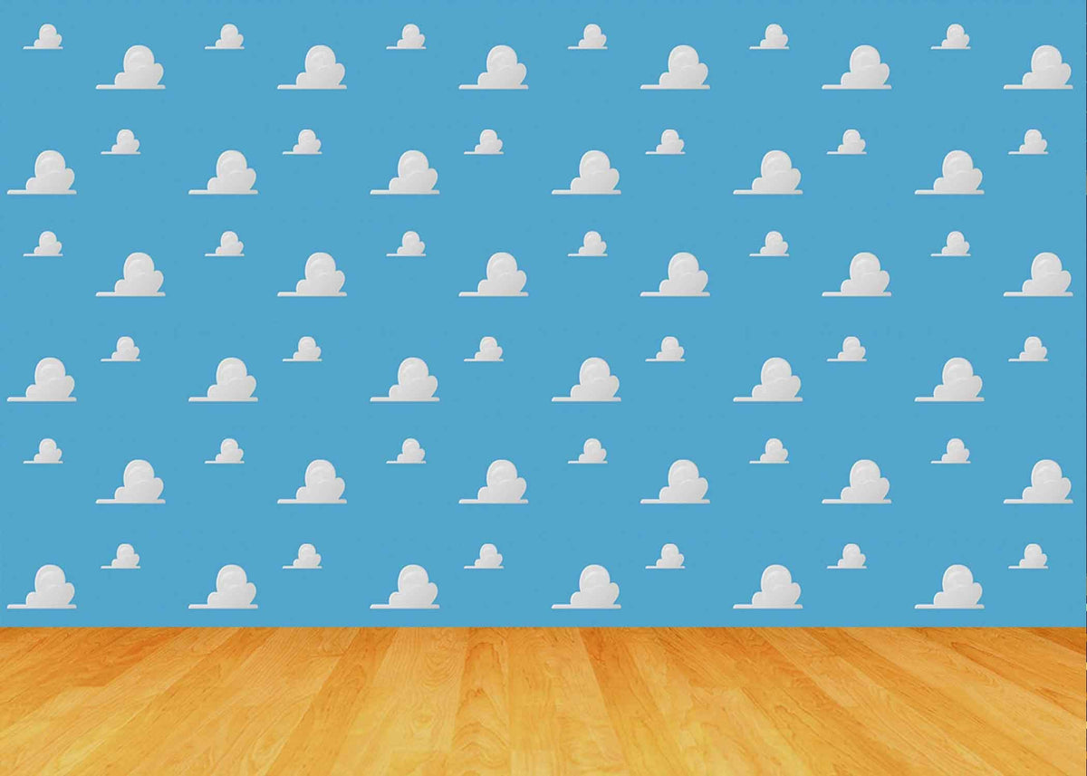 Cartoon Blue Sky And White Clouds Backdrop Wood Floor Backdrop 7X5Ft Polyester Kids Birthday Party Boy Baby Shower Photo Backgro