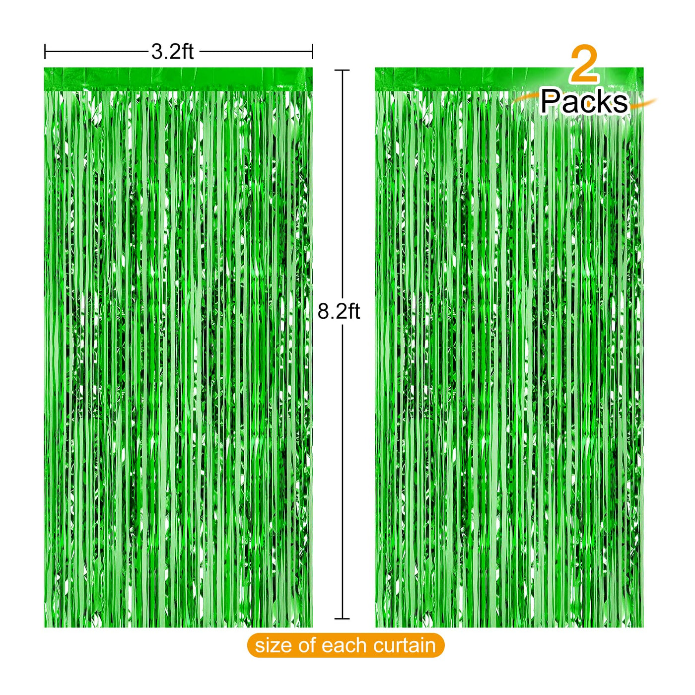 Product Information Color: Green Material: Bopet Size: Each Curtain 1M X 2.5 M/ 3.28 Feet X 8.2 Feet, Can Be Freely Cut To Suitable Size According To Needs Package Content: 2 Pack Foil Fringe Curtains Use Guide 1, This Foil Fringe Curtain Comes With Double-Sided Adhesive Tape At The Back. You Can Also Use Your Own Tape To Reuse 2, Peel Off The Tape And Paste The Curtain On The Wall Or The Door. Avoid The Windy Places, If You Use Them In The Outdoor