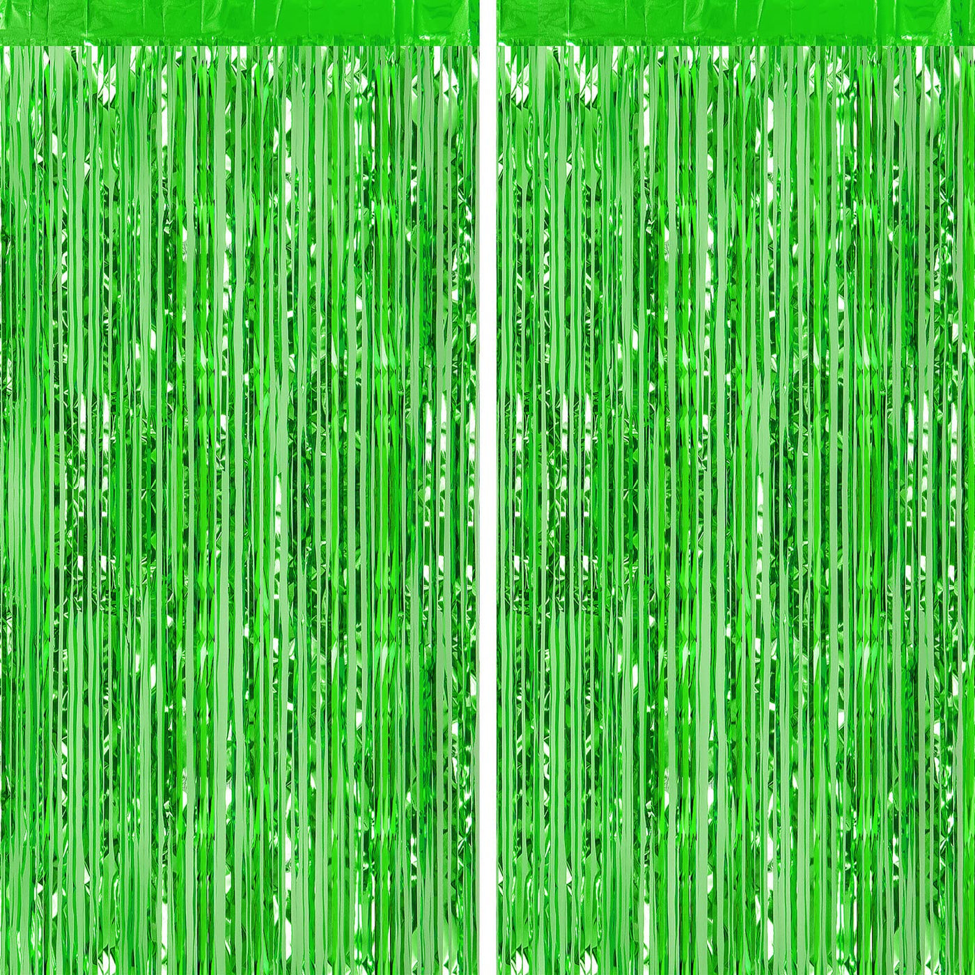 Chrorine 2Pcs 3Ft X 8.3Ft Green Tinsel Foil Fringe Curtains Streamers Backdrop For Green Birthday Jungle Safari Tropical Party C