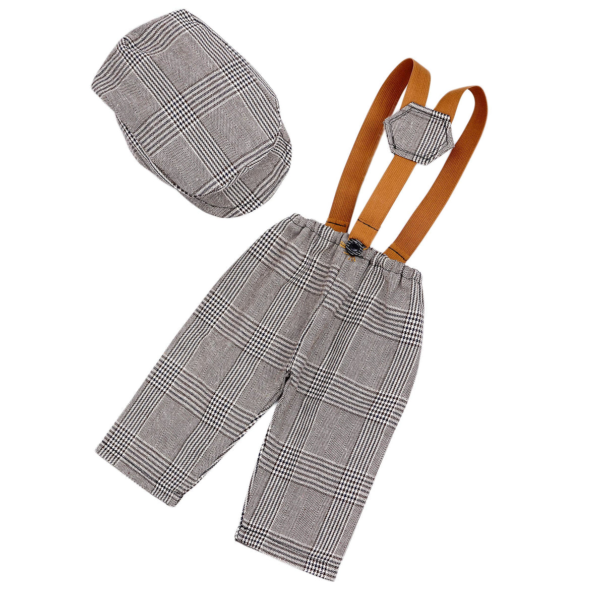Coberllus Newborn Monthly Baby Photo Props Stripe Cool Boys Cap Rompers Photography (Creamy Gray)
