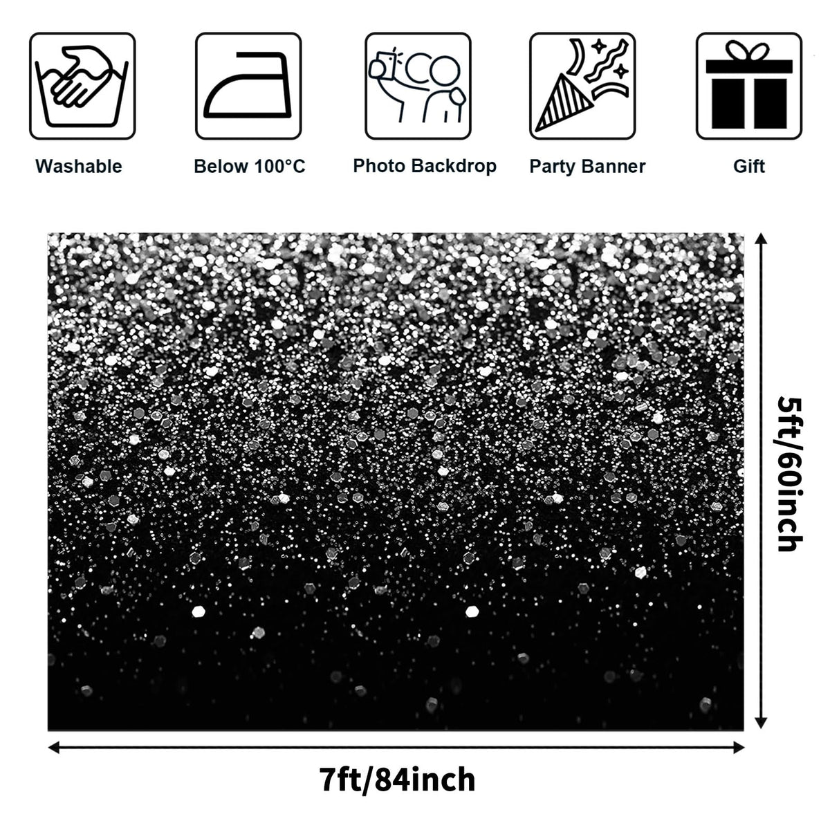 Comophoto Silver Bokeh Black Backdrop 7X5Ft Birthday Party Silver Black Themed Photography Background Silver Dots Decorations Wedding Birthday Party Events Banner Photo Booth Backdrops