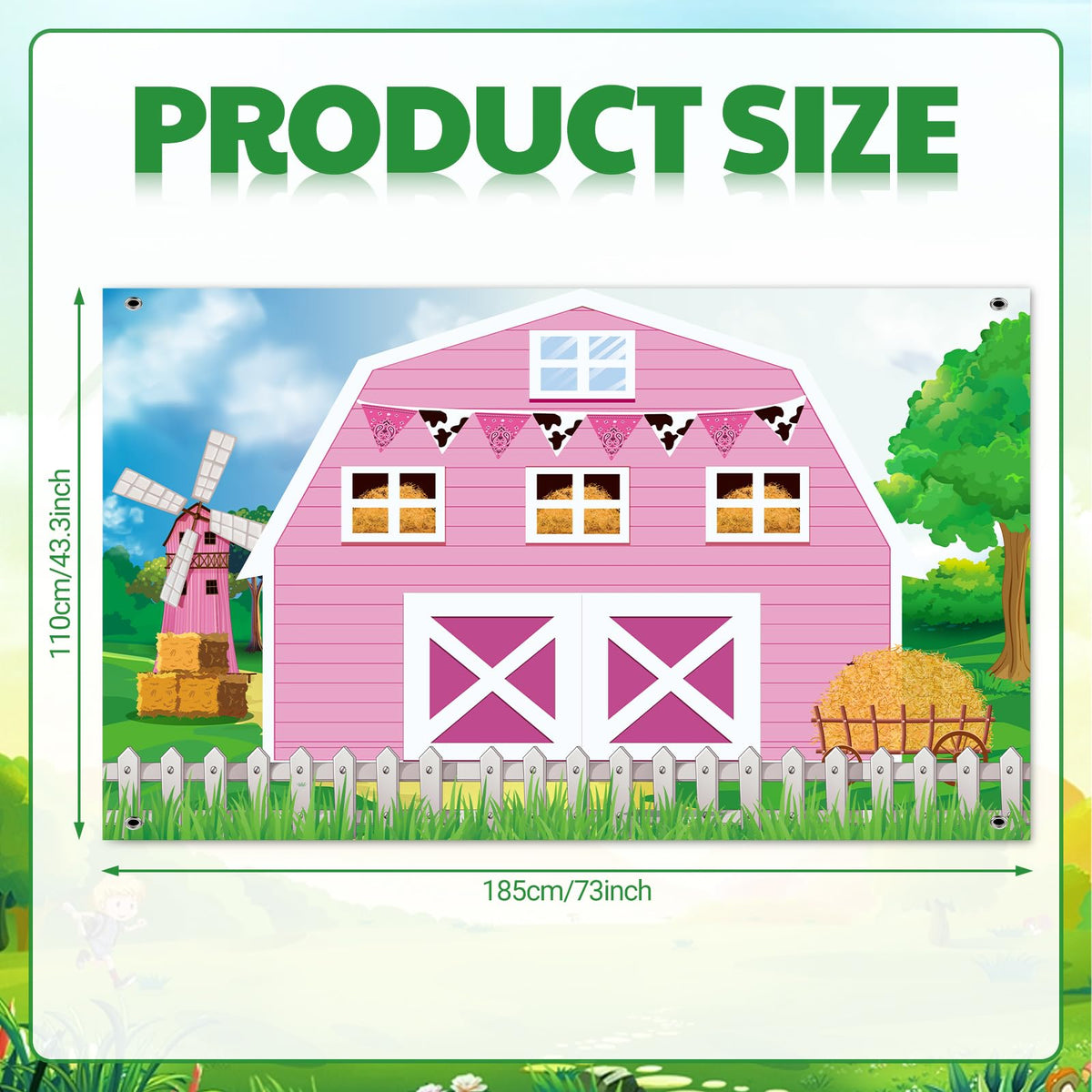 Q: What are the dimensions of the Farm Barn Door Backdrop?A: The Farm Barn Door Backdrop measures approximately 72.8 x 43.3 inches (185 x 110 cm), making it large enough for various themed decorations and photography at your party.