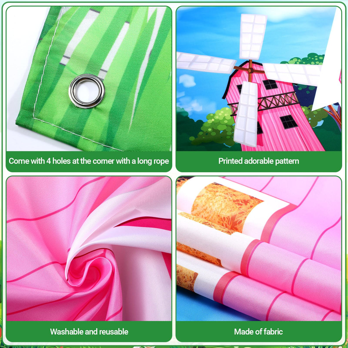 Q: What occasions is this backdrop suitable for?A: This backdrop is perfect for a variety of fun occasions, including farm animals theme parties, birthday celebrations, wall decorations, and other festive events, adding a vibrant atmosphere to your gathering.