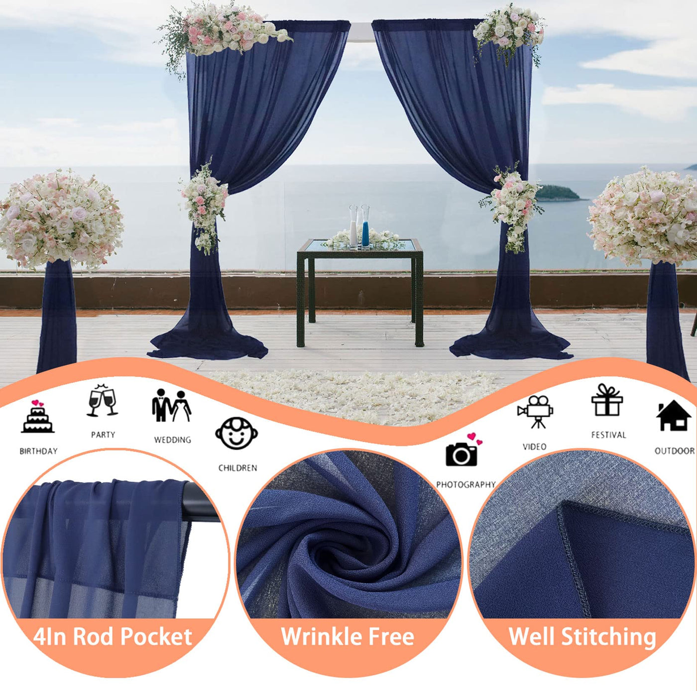 Fuhsy Sheer Navy Blue Backdrop Curtain Chiffon Curtains Wedding Drapery 10 Ft Curtains Tulle Backdrop Drapes Wedding Arch Drapes