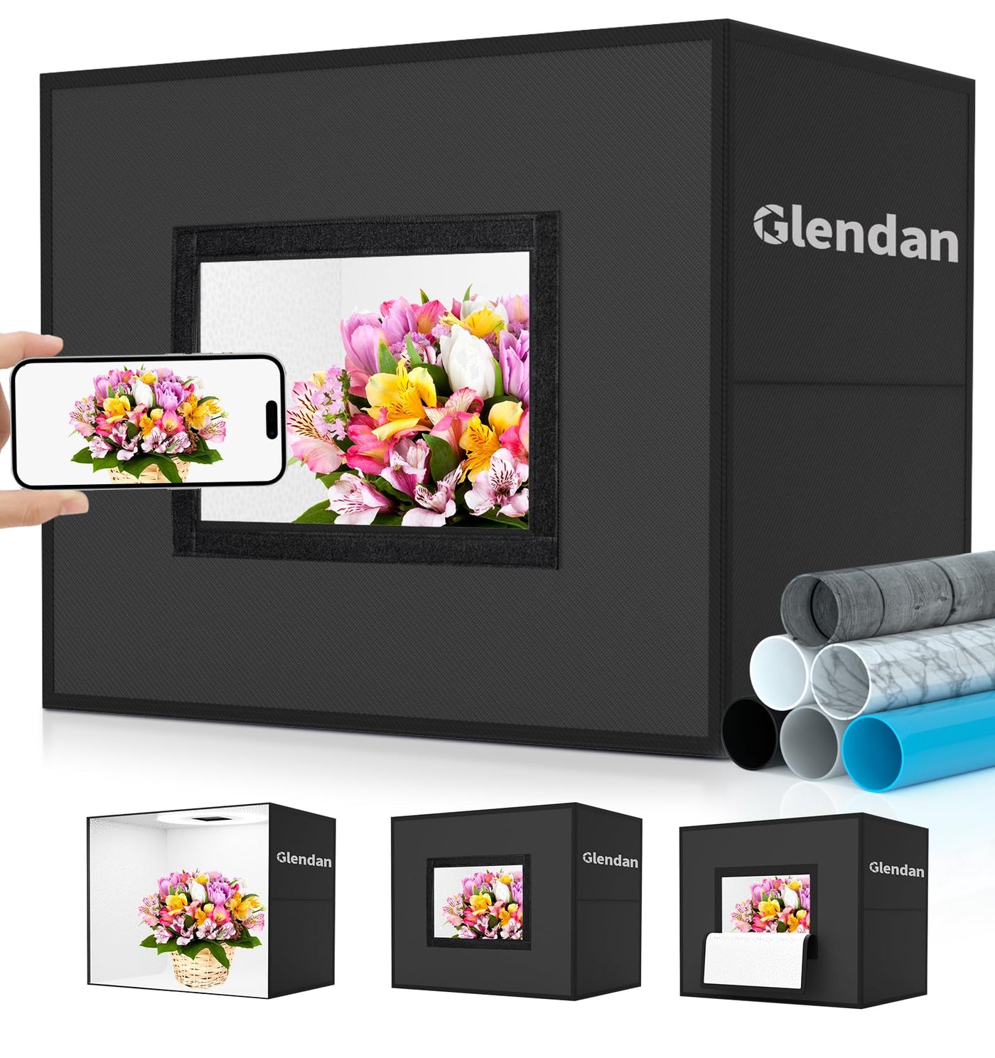 Take Good Photos Like A Proglendan Photography Light Box Built With 336 High-Quality Led Beads, Dimmable Led Lights That Help You Find The Right Lighting To Show Off The Beauty Of Each Unique Piece You Shoot. It Also Comes With A Variety Of Colorful Backgrounds, A Light Diffuser, And Light Reflection Boards. When Youre Done With Your Shoot, The&Nbsp;Studio Light Box Folds Up And Even Has A Convenient Carrying Handle.&Nbsp;Product Specification:Number Of Led Beads: 336&Nbsp;High-Display Lamp Beadscolor Rendering Index: ≫95Color Temperature: 5500Kdimming Range: 10%-100%Dimming Gear Position: 10 Gear Adjustmentpower: 1-10 W ; Voltage: 5Vpower Supply Mode: Adaptercable Length: 2.5Mpackage Includes:1* 20*16&Nbsp;Inch&Nbsp;Photo Studio Box1* 336&Nbsp;Led Light Beads6*&Nbsp;Pvc Backdrops (With 8 Color )1* Light Diffuser 4* Reflection Boards1* Adapter1* 2.5M&Nbsp;Cable1* Carry Bag1* User Manual