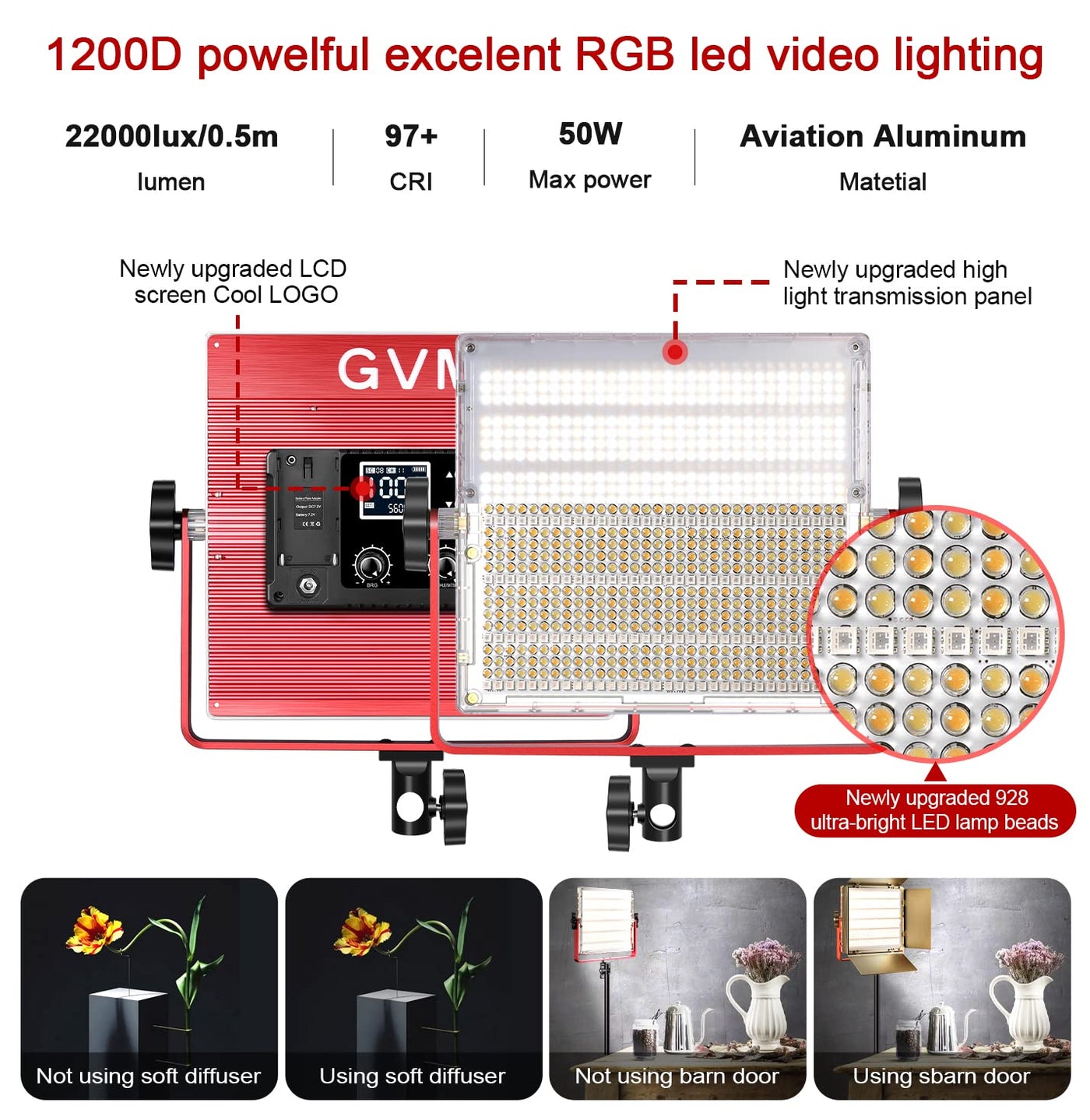 Gvm 1200D Pro Rgb Led Video Light With 3 Softboxes,50W Video Lighting Kit, 360Full Color Led Panel Light Kit With App Control 3