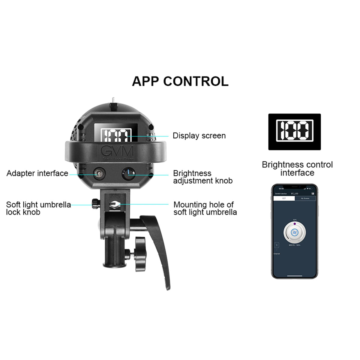 Gvm Great Video Maker 80W Portable Led Video Light White 5600K Daylight Balanced Video Light, Cri 97+ Continuous Lighting Bowens