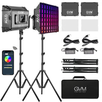 Gvm Rgb Photography Lighting Kits With 2 Softboxes, 880Rs 60W Studio Lights With Bluetooth Control, 2 Packs Video Light With 18