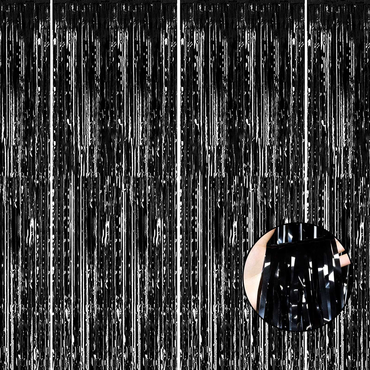 Halloweendecorate 4 Pack Black Foil Fringe Curtain Backdrop, 3.28Ft X 8.2Ft Metallic Tinsel Streamer Curtains For Party, Photo B