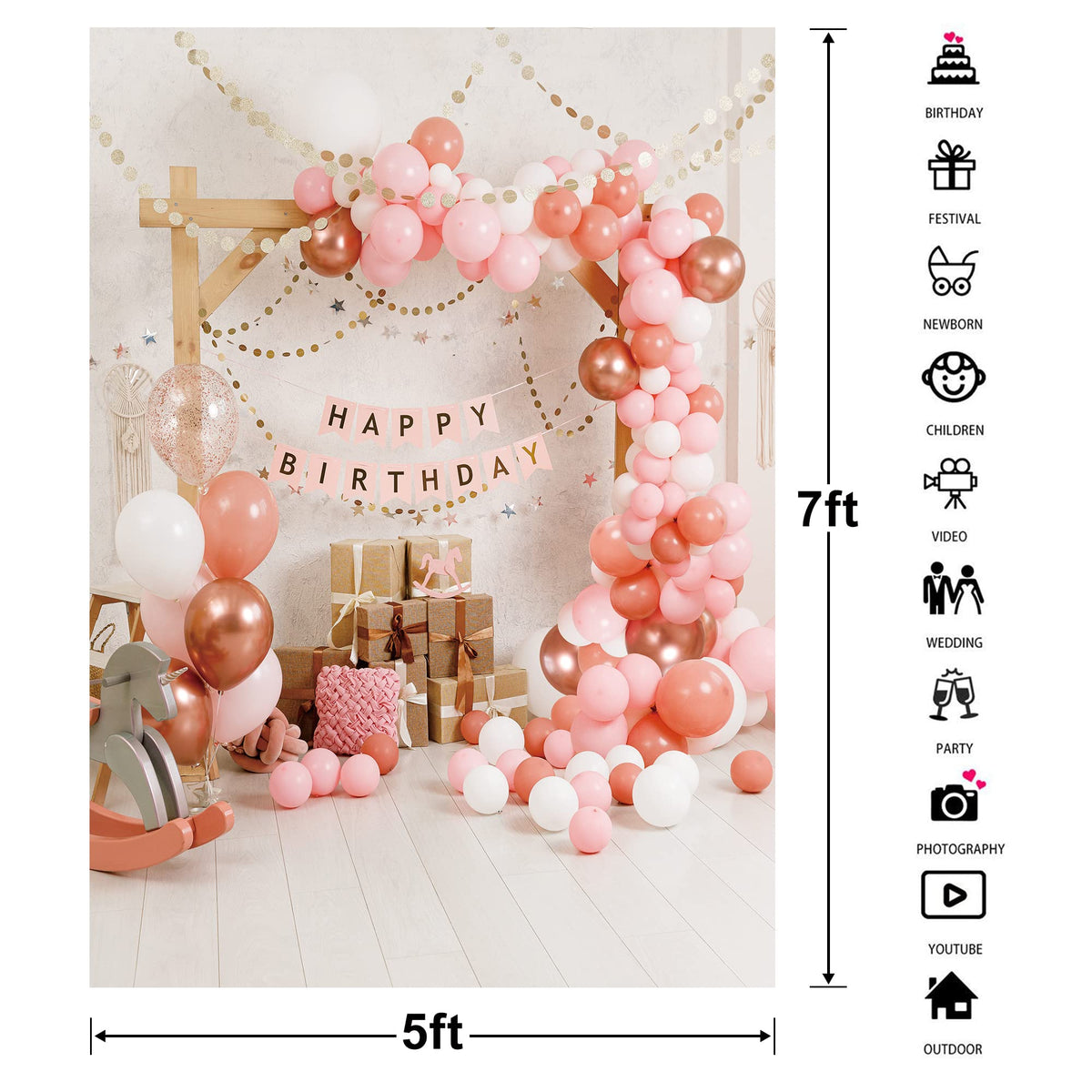 Sizes: 5Wx7H Feet. We Provide Special Custom Service. Other Size Or Pictures You Want To Custom And Print, Please Contact Us Before Payment. Unique Design: Designed With Pink Balloons, Advanced Pattern Printing Technology,The Happy Birthday Backdrop Image Clearly. Apply: Ideal For Girl Birthday Photography Background, As Well As For Video Backdrop. Material: 100% Polyester Fabric. Solid, Portable, Non-Reflective, Washable, May Have Few Creasesbut Easy To Iron. Warm Tips: Item Will Be Sent By Folded.Please Iron It Toremove The Wrinkles If Necessary.