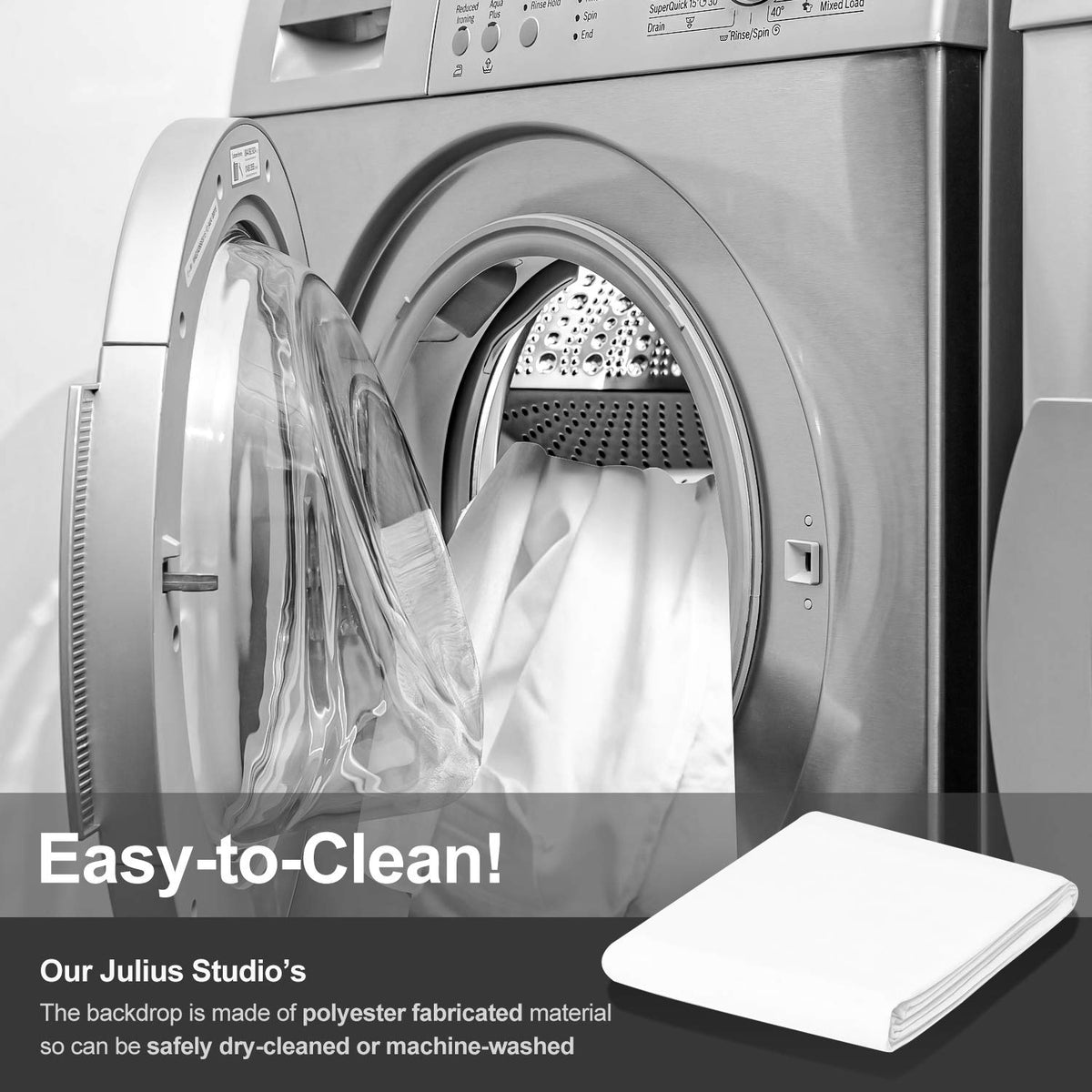 Q: Is the fabric backdrop machine washable?A: Yes, the backdrop is made from lightweight cotton material that is machine washable, making it easy to maintain and keep clean for repeated use.