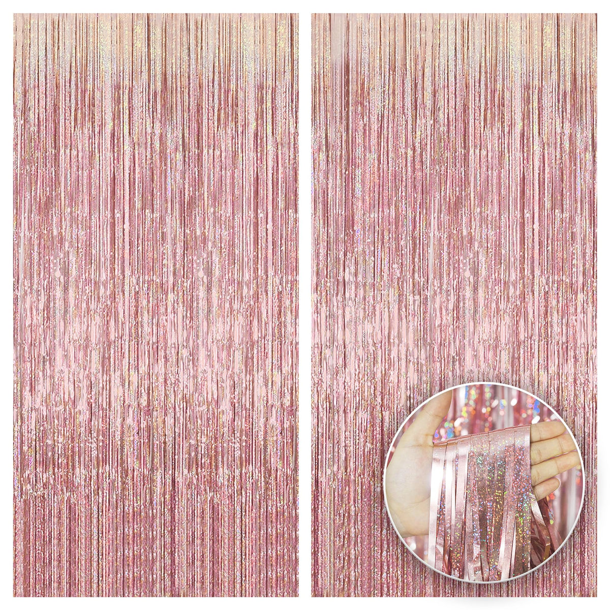 Katchon, Iridescent Rose Gold Fringe Curtain 3.2X8 Feet, Pack Of 2 | Rose Gold Backdrop Curtain For Rose Gold Birthday Decorat