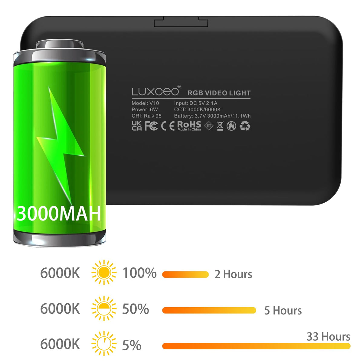 Q: How long does the battery last on the Leshiou V10 LED light?A: The built-in 3000mAh lithium battery allows the Leshiou V10 LED light to provide continuous lighting for up to 2 hours. Additionally, the light can be used while charging via Type-C, ensuring you never run out of power during important shoots.