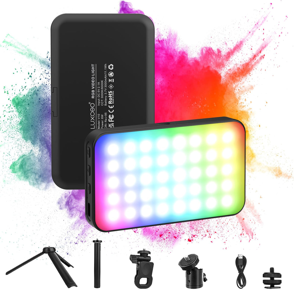 Leshiou Rgb Led Video Light Live Streaming Video Portable Camera Lights With 0-360 Full Color Cri 95+ 3000K/6000K 3000Mah Rechargeable Led Lighting For Photography, Vlogging, Video Conference