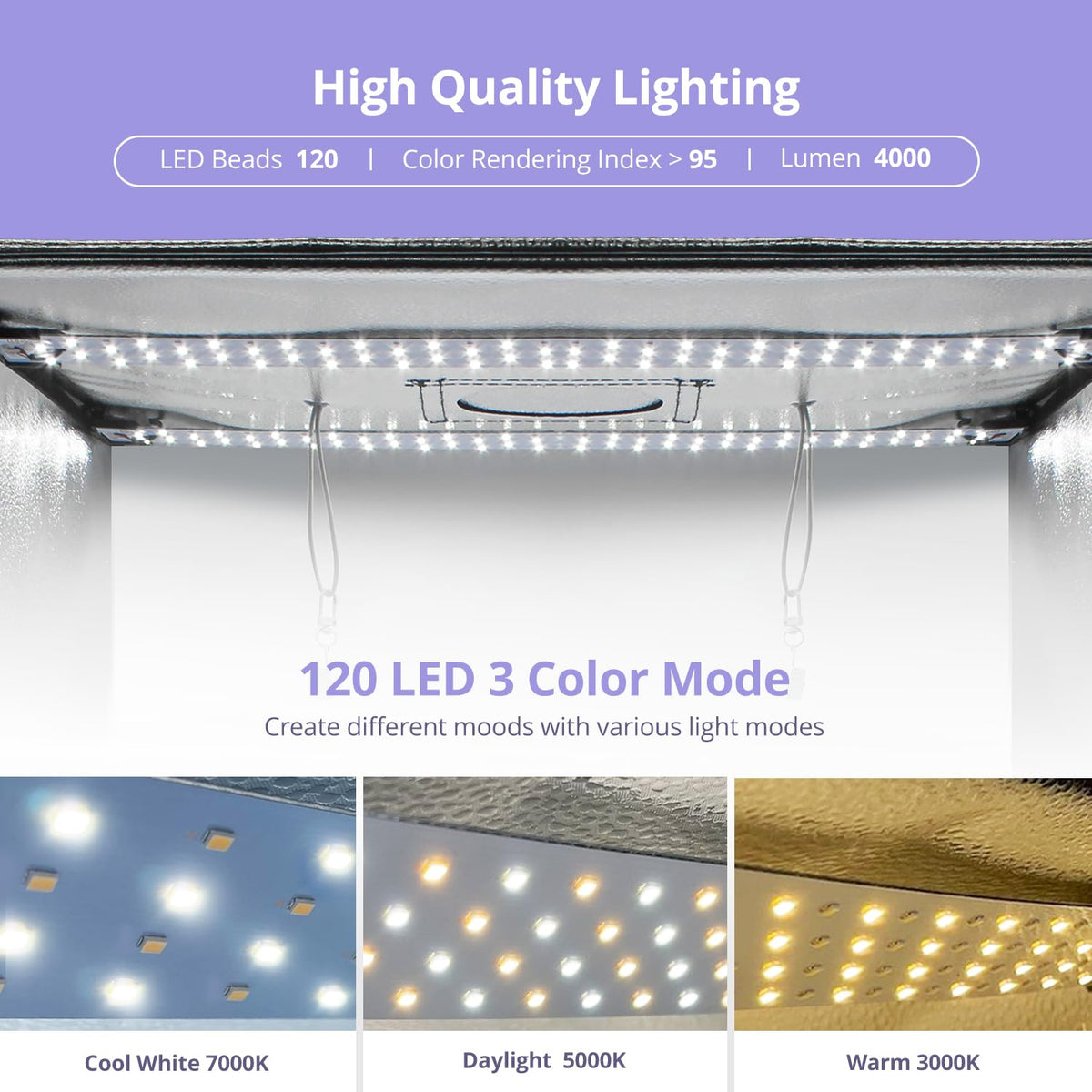 Limostudio 24 X 24 Inch (New Model) Led Light Box Photo Shooting Tents, 120 Led > 4000 Lumen, Cri > 95, Elastic Ceiling String C