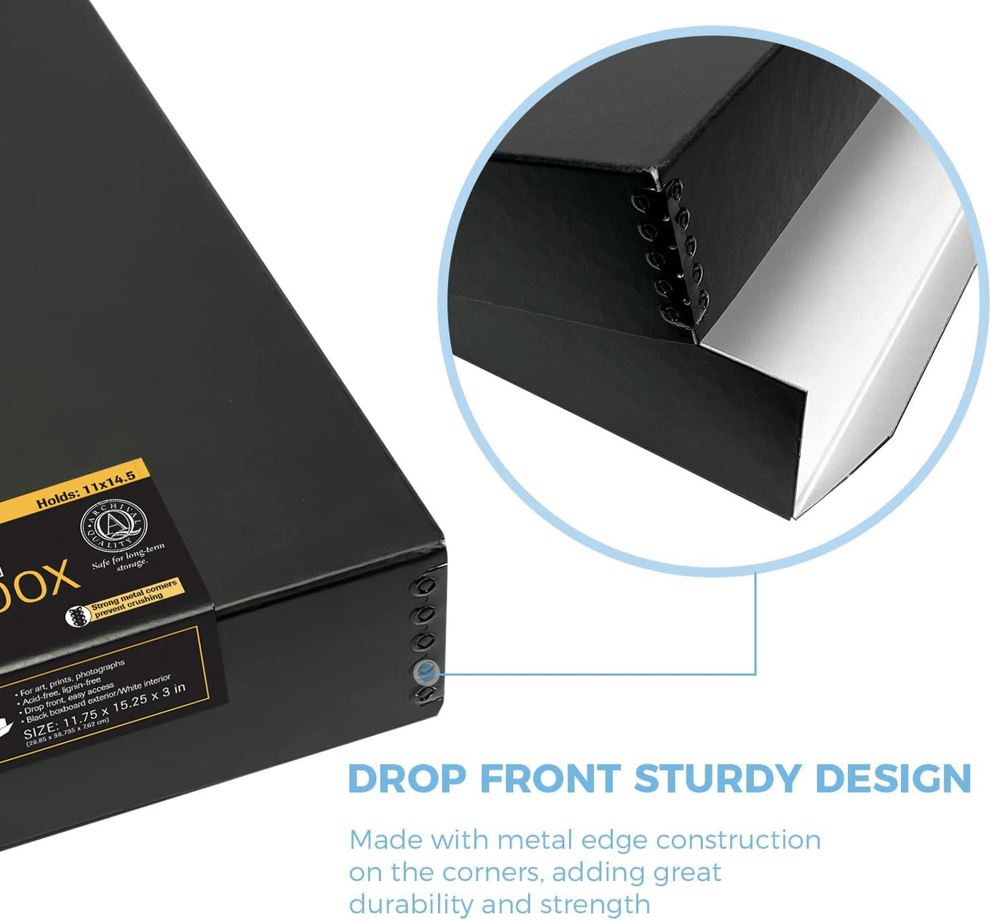 Lineco, 11X14 Black Museum Archival Storage Box, Drop Front Design, 11.75X15.25X3 In, Acid Free With Metal Edge, Preserves Picture Longevity, Organize Photos Documents, Crafts, Diy, 2 Pack