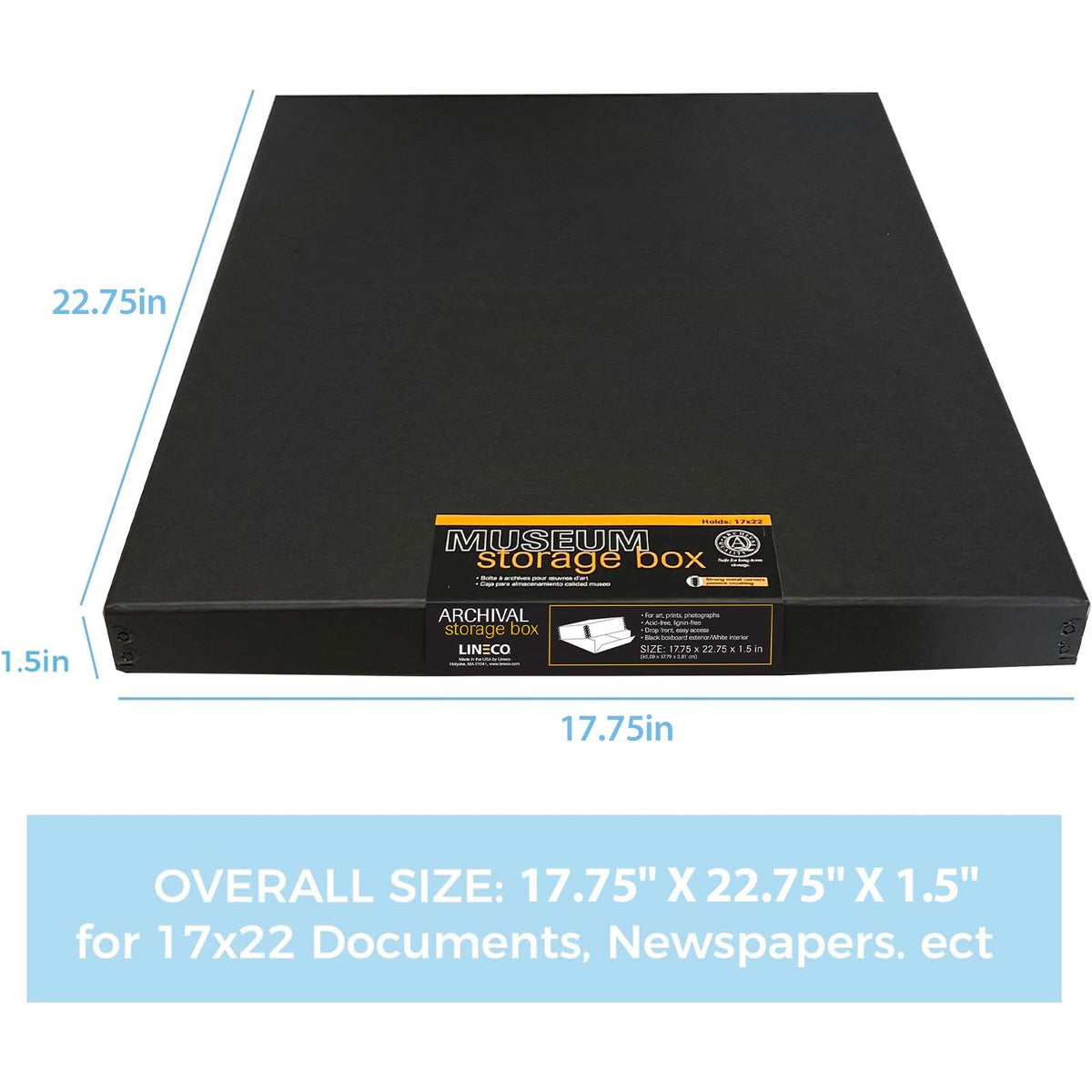 Lineco, 17X22 Black Museum Archival Storage Box, Drop Front Design. Acid Free With Metal Edge. Preserves Picture Longevity, Organize Photos Or Documents, Crafts, Diy.