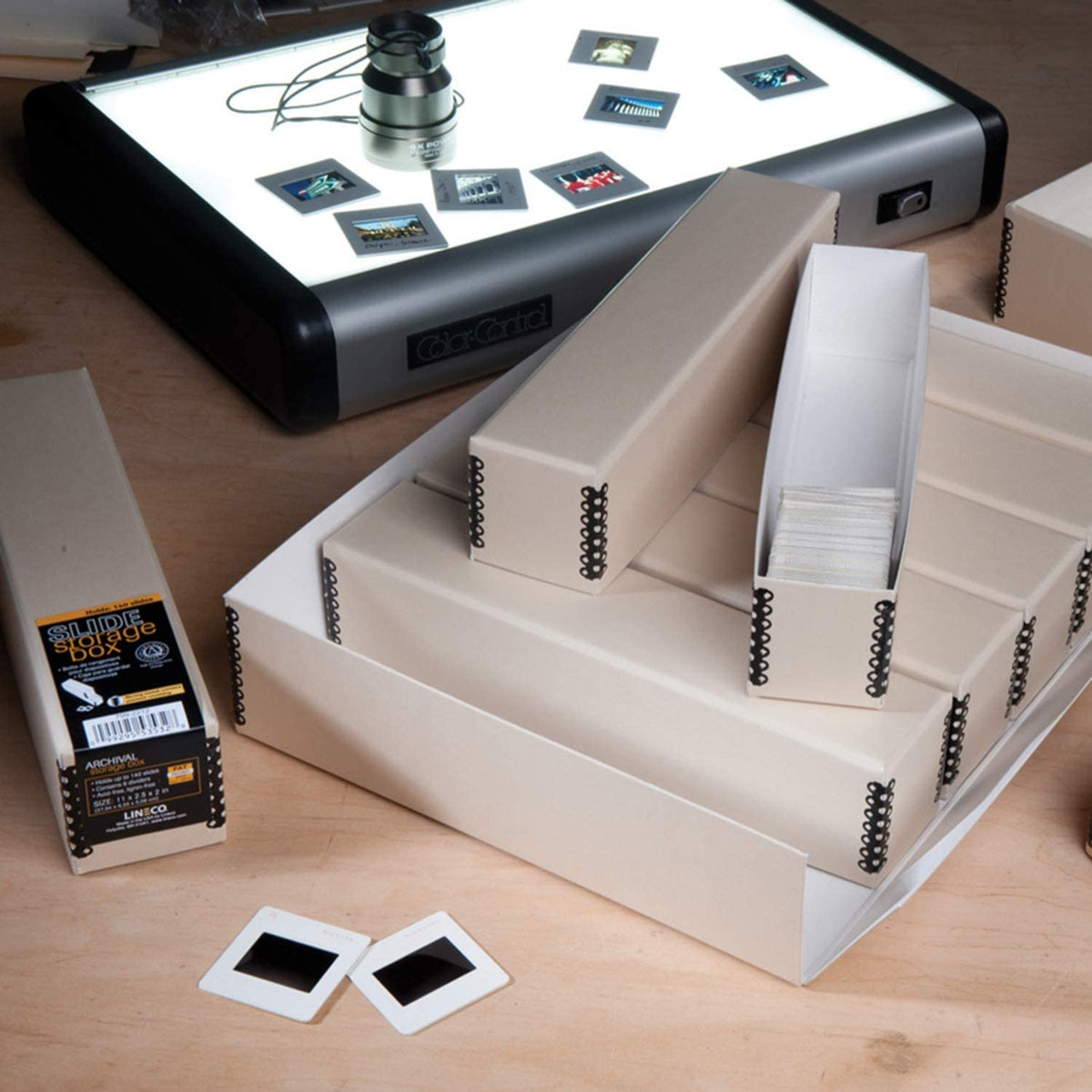 Lineco, Archival Slide Storage Box 15.5' X 11.5' X 3', Holds Up To 840 Slides, With 6 Inner Slide File Cases, Tan (Pack Of 2)