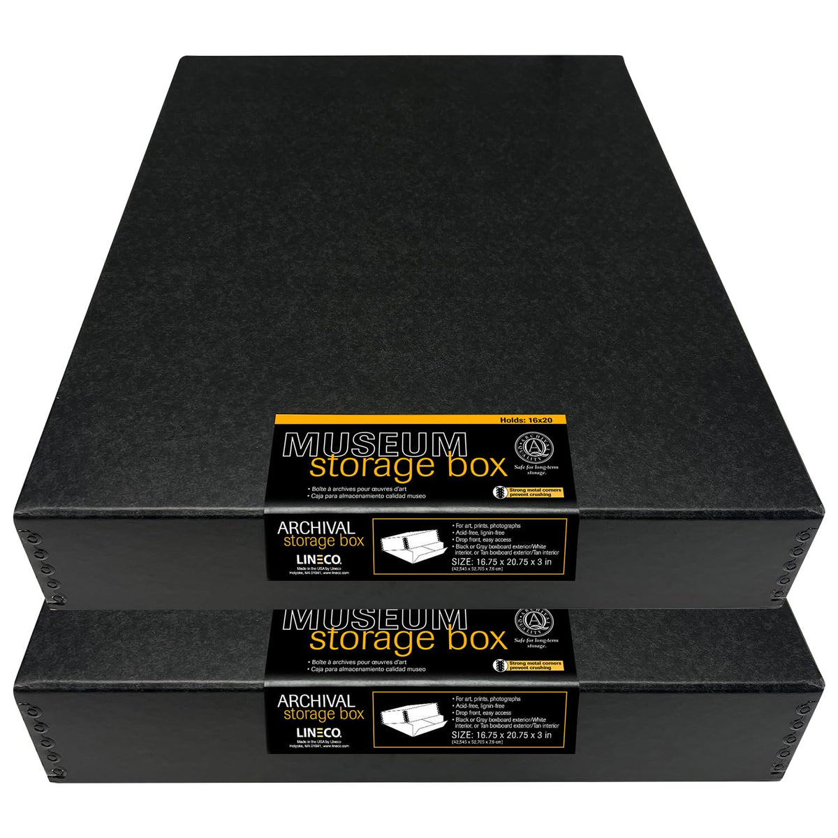 Lineco Museum Archival Storage Box, 16.75X20.75X3 In. Drop Front Design. Acid Free With Metal Edge. Organize Photos, Pictures, Prints, Documents, Crafts, Diy. Black, 2 Pack
